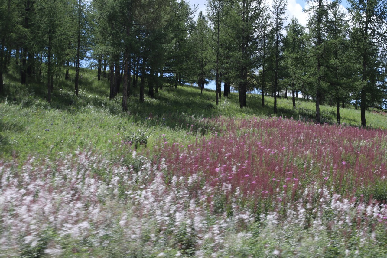 Et puis cette nature incroyable, indomptable, sauvage et tellement belle : dunes dans le désert avec des plaines sur des kilomètres, des rochers partout, du sable blanc à perte de vue – on se demande ce que géologiquement ce pays a vécu il y a des millions d’années ; les lacs partout où il fait bon se baigner pour se rafraîchir et se délasser d ‘une journée secouée en voiture ; les rivières serpentant partout où il fait bon rafraîchir ses jambes tellement la chaleur est forte, regarder les truites passer et jouer de la canne à pêche pour tester le goût du poisson ; les canyons colorés, grandioses où les dinosaures ont vécu. Et puis le lac khovsghol où le monde se reflète, petit frère du lac Baïkal où j’ai aimé tout particulièrement retrouver cette nature sauvage et revêche à l’homme.
