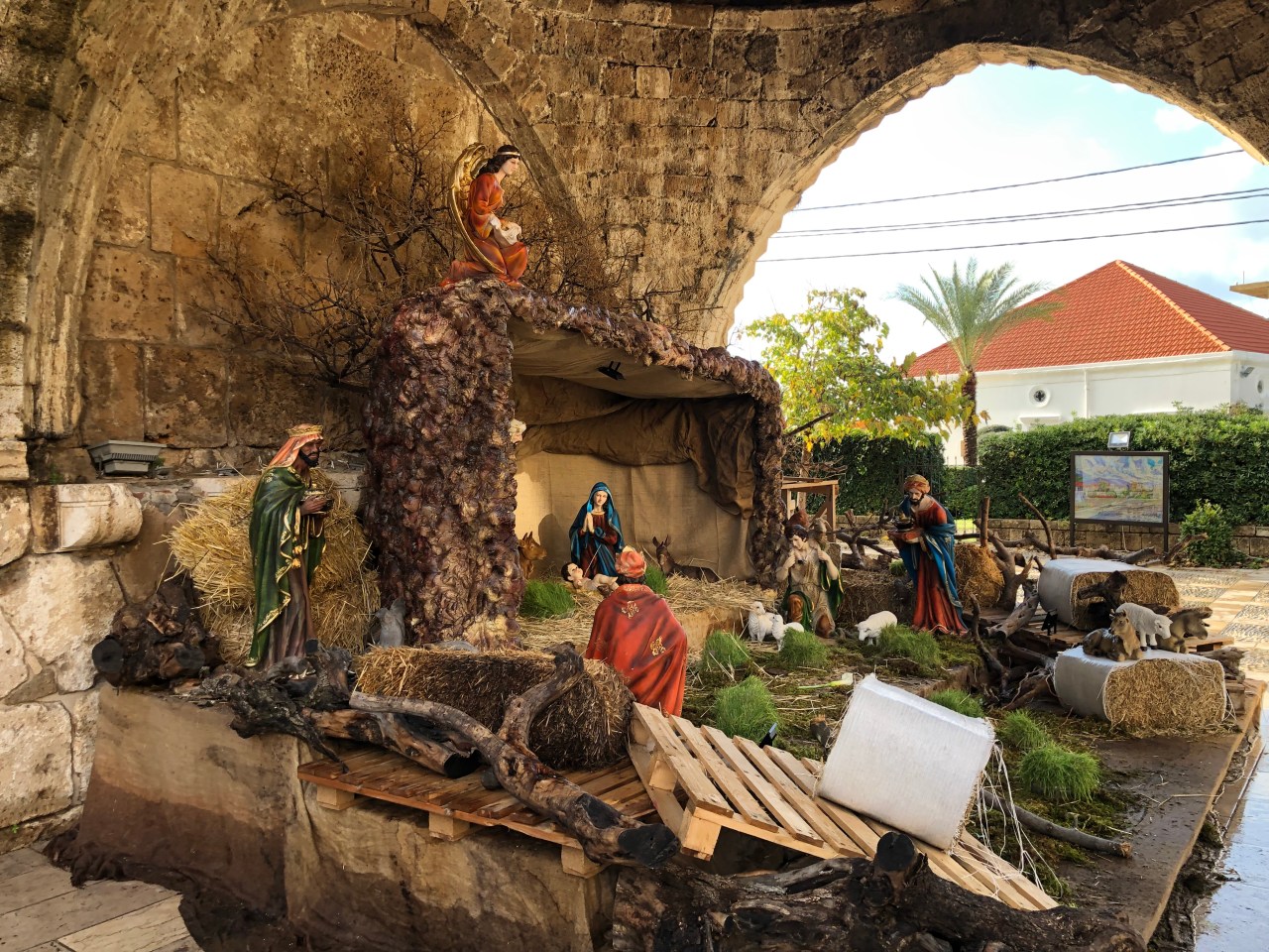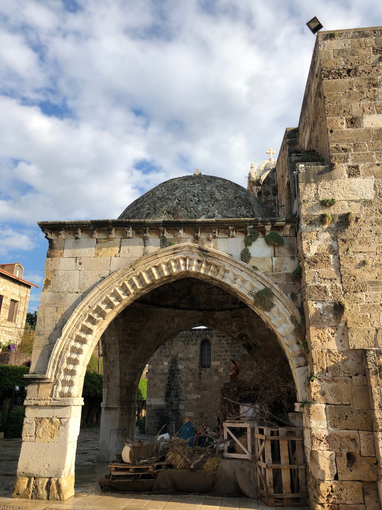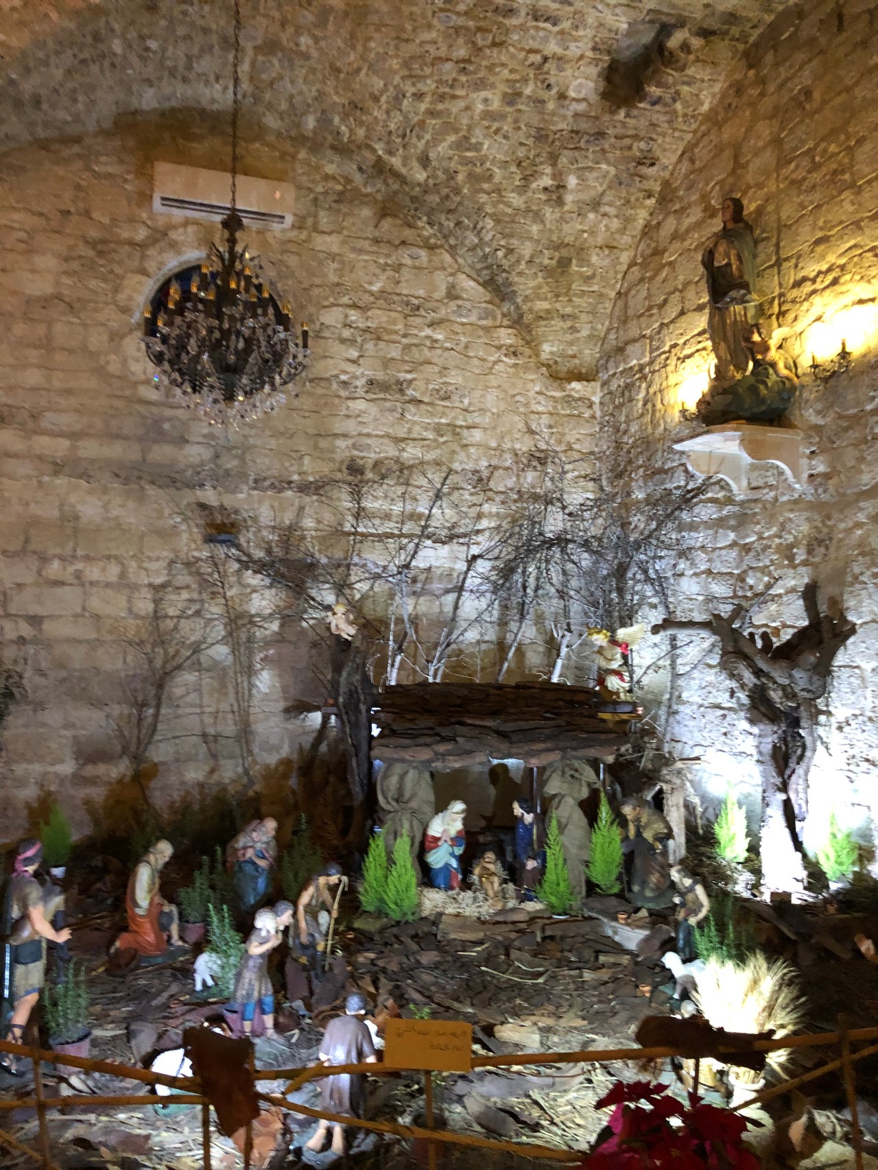 A Byblos aussi sous l’auvent de l’église Saint Marc, à l’extérieur, aux yeux de tous, se trouvait une magnifique crèche, à taille humaine, dont voici la photo.