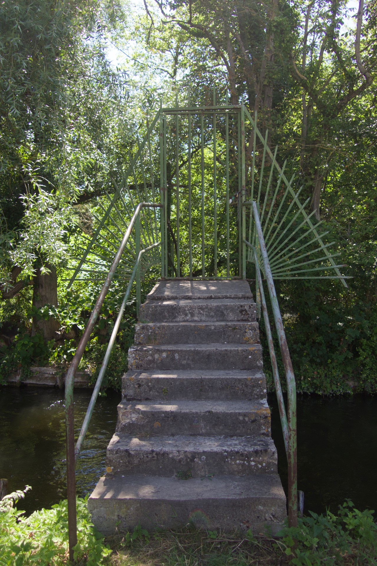 Puis continuant mon chemin on peut voir dans le fond des ponts en bois permettant de passer entre deux champs ou hortillons – histoire de continuer son chemin ; ou bien un escalier pour traverser un canal ouvre sa grille vers un lieu mystérieux cachés à nos yeux. Cela intrigue et donne envie de pousser la porte – mais elle est fermée au quidam. Dommage !