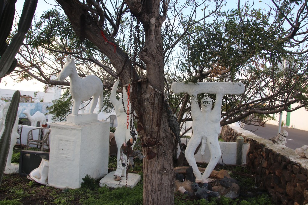 Ces œuvres éclectiques sont de Manuel Ramirez Perdomo, ou de José García Martín, un artiste local qui a consacré sa vie à la peinture et à la sculpture, des œuvres exposées dans divers endroits comme le Texas Ranch. Il semblerait qu’il soit décédé en mai 2019.