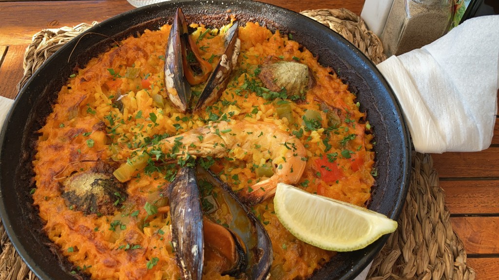 A Playa Quemada j’y suis allée deux fois pour la vue sur la baie et les pieds dans l’eau mais surtout pour les bons petits plats concoctés par le chef : les croquettes qui sont usuelles ici ; le poulpe « cevice » mais cuit dans l’huile d’olive et servi dans un catelon et le dessert une mousse au citron agrémentée de mangues.  Une autre fois une paella m’attendait et me tendait les bras Je n’ai pas résisté non plus à la mouse de figues (une des meilleures testées dans l’ile). Quel délice des papilles gustatives !