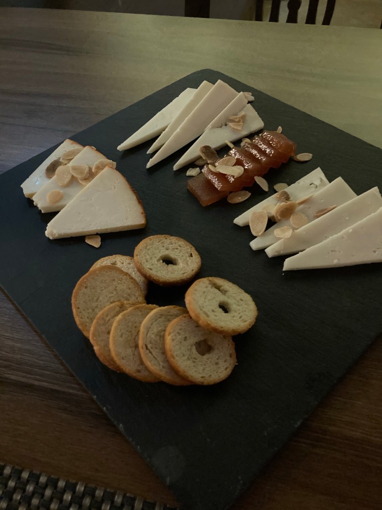 A la Caserio de Mozaga dans une ancienne bergerie refaite avec goût j’ai dégusté des croquettes de jambon, de fromages, agrémentées d’un verre de blanc sec El Grifo. J’ai continué avec un poisson du cru dont je n’ai pas retenu le nom. J’ai aussi testé le gâteau au fromage à se damner avec son coulis de framboise. Parfois le soir une jolie soupe verte de petits pois venaient réchauffer la soirée fraiche, accompagnée d’une assiette de fromages de brebis (frais, sec et entre-deux). Un délice.