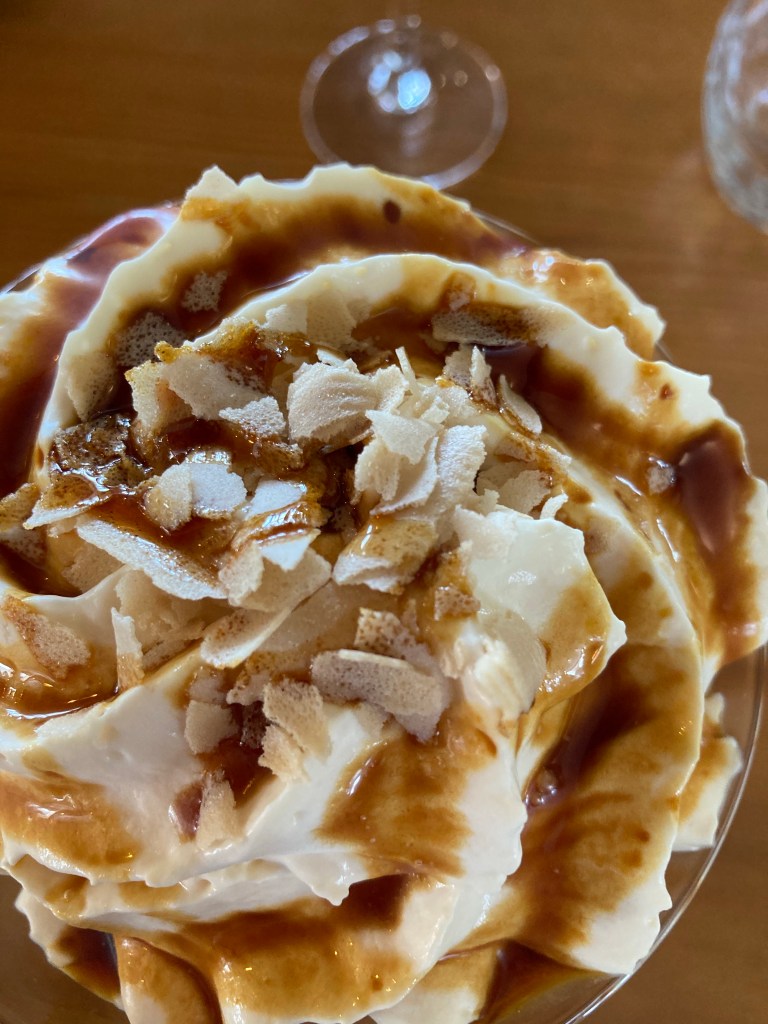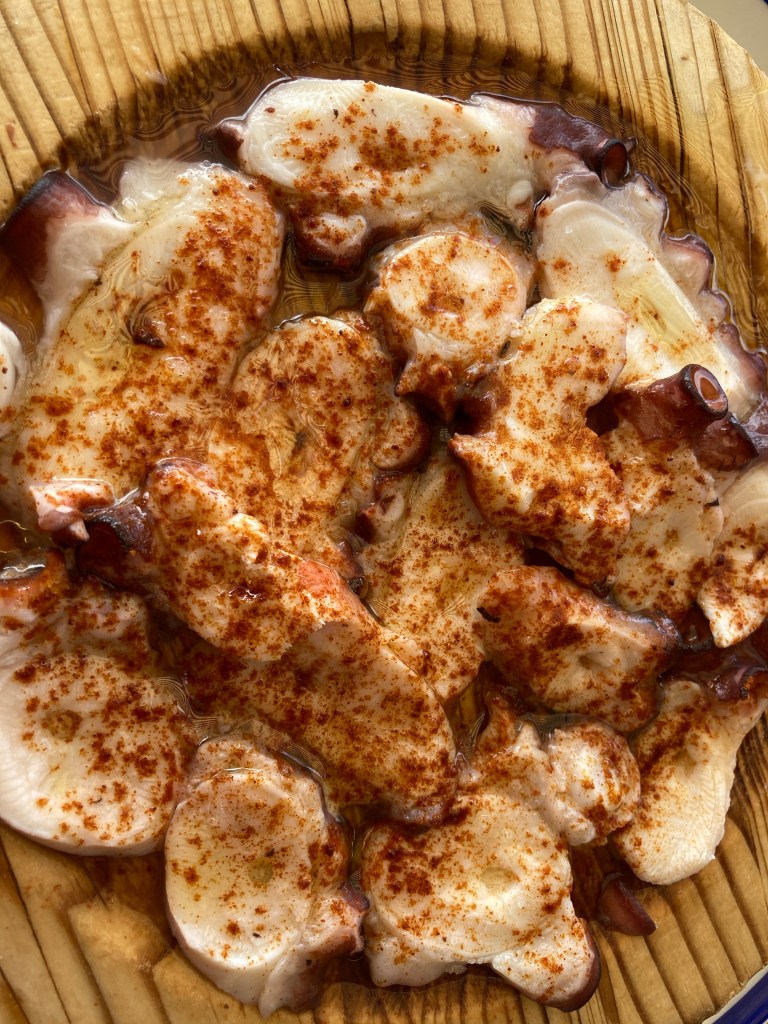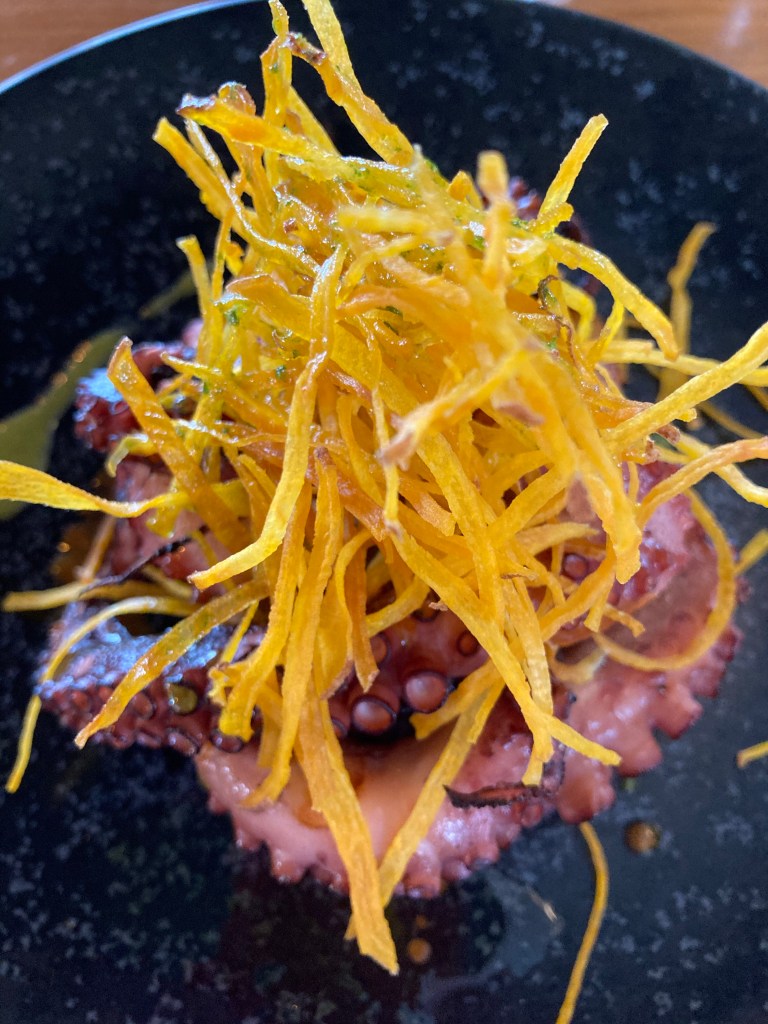 Sur le bord de mer, côté ouest, sur la plage de Famara, au restaurant Las Dunas j’ai mangé un poulpe grillé (tout simple) avec un filet d’huile d’olive et des pommes de terre chips à se rouler par terre. Suivi d’une glace de turron avec de la chantilly et un alcool prénommé El Gofio– très léger !
