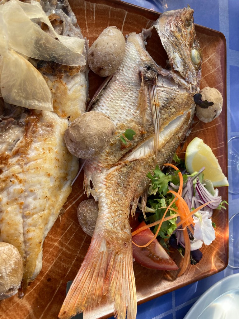 Au Costa Azul j’ai adoré le fromage grillé et panné servi avec de la confiture et le plat chaud de différents poissons et des champignons.