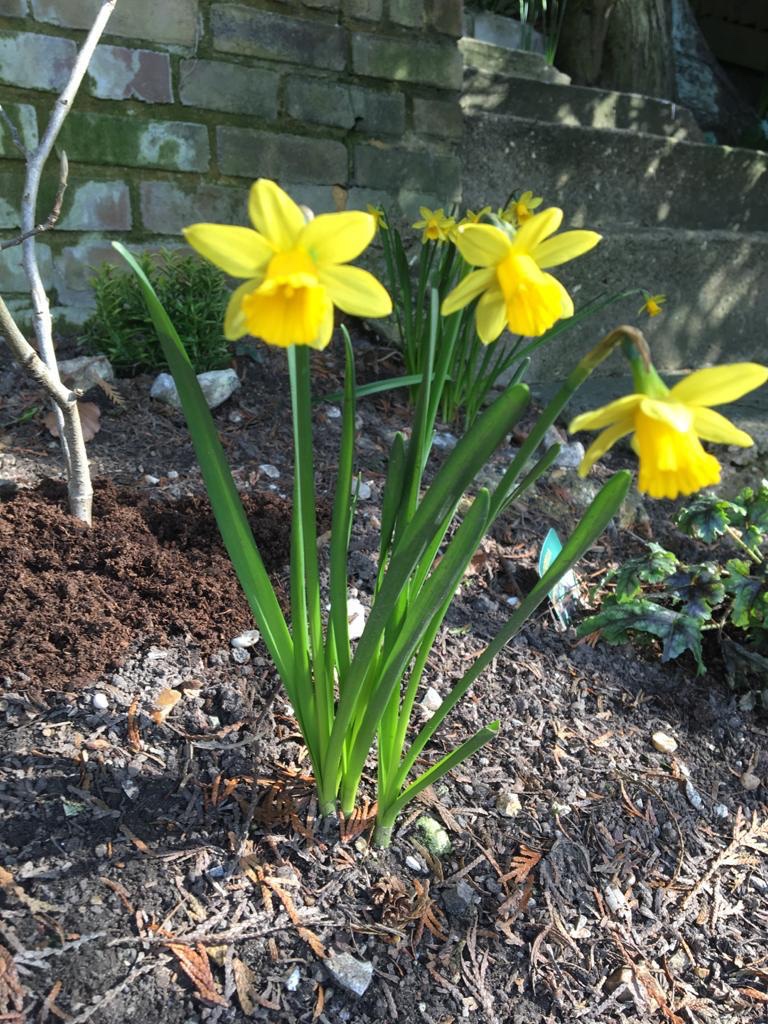 Les narcisses jaunes et blancs ressortent de terre et sont éclos. Les premières fleurs du printemps avec les forsythias jaunes fleurissent eux-aussi et redonnent gaieté à nos humeurs tristes.