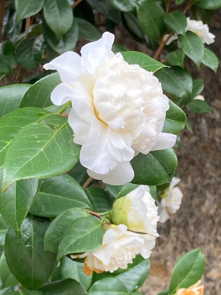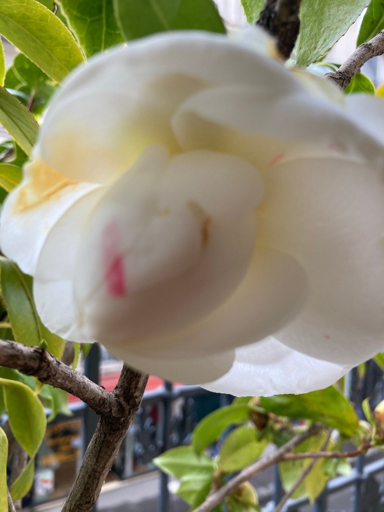 Et à côté une autre sorte de camélia ouvre ses pétales et offre son cœur au vent, la pluie et le bonheur des hommes qui passent.