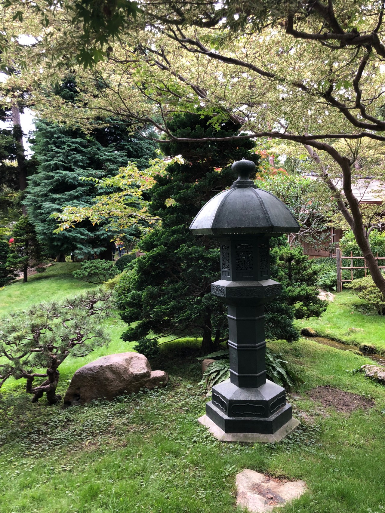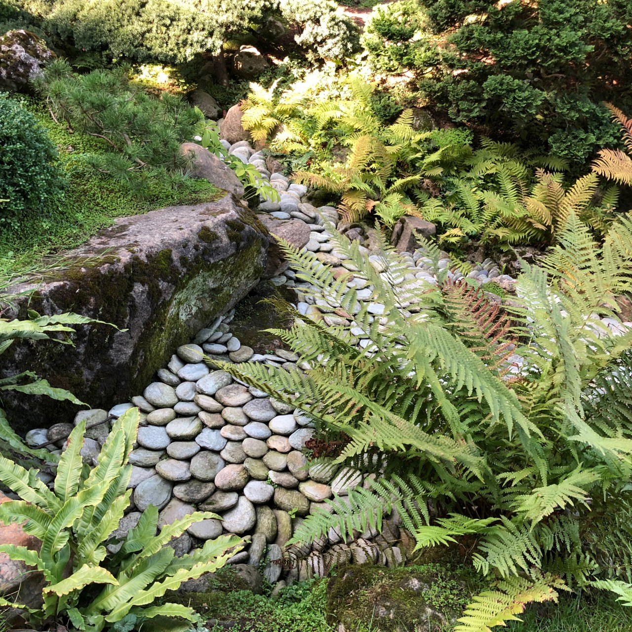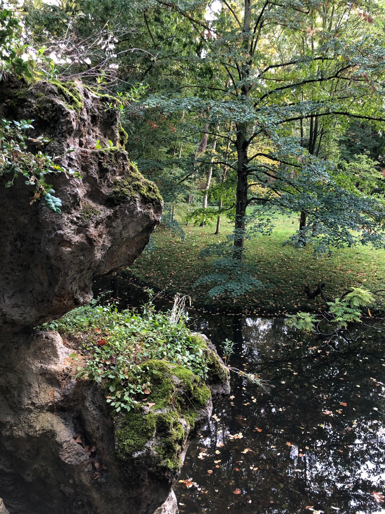 J’ai fini ma balade par le jardin anglais avec sa grande pelouse verte et surtout ses rochers bordés d’une rivière sinueuse.