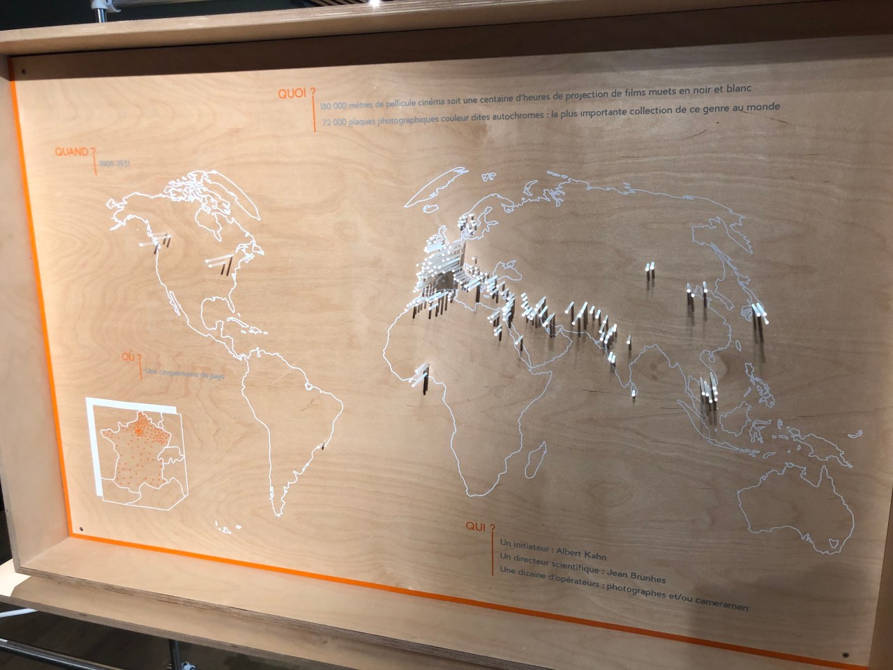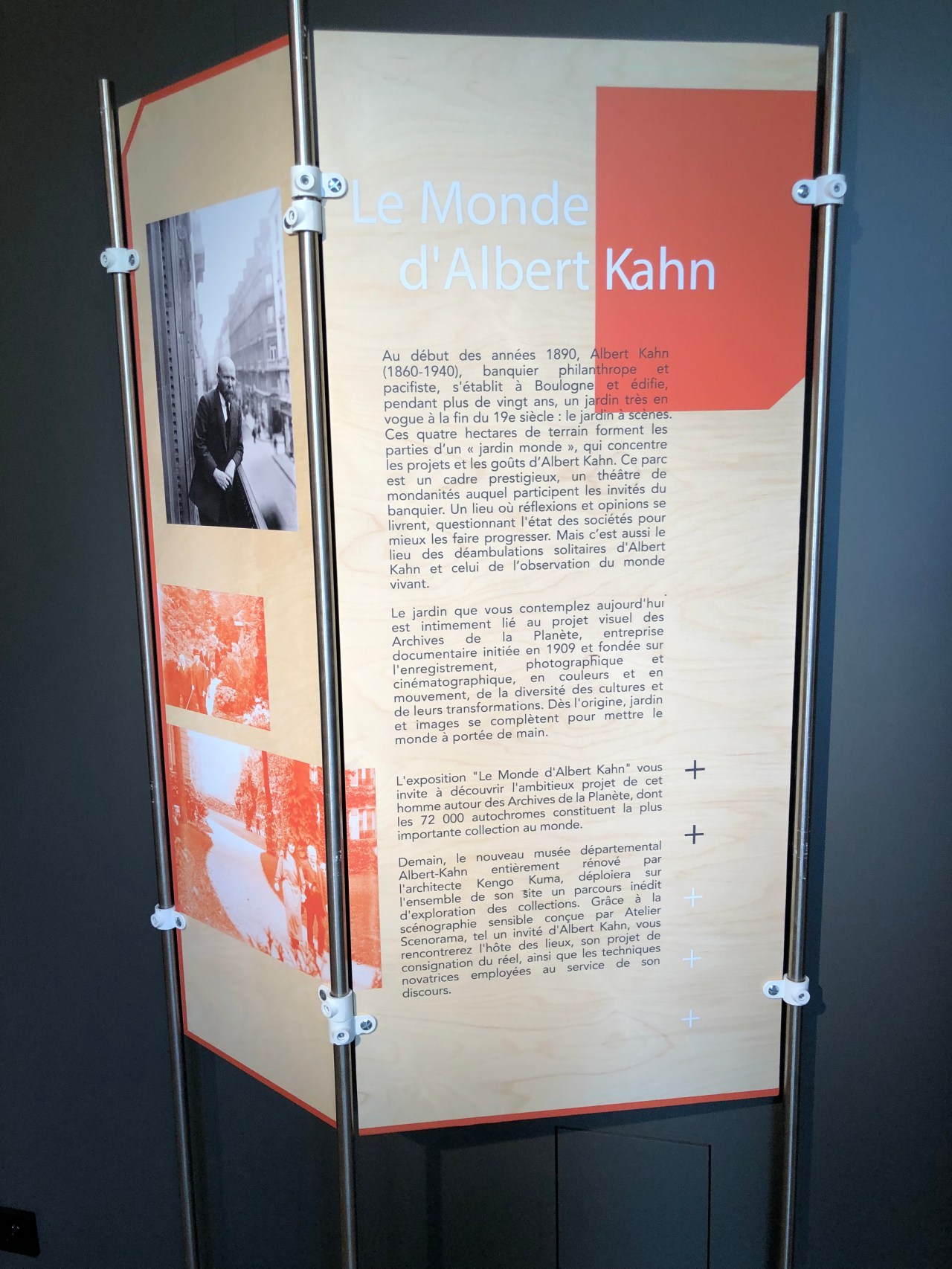 Avant de continuer plus avant dans le jardin je me suis arrêtée au petit musée qui présente des photos d’Albert-Kahn. Photos de voyages à travers le monde et un clin d’œil m’a amusé car un panneau présentait des photos de Mongolie. Voyage que j’ai réalisé en été 2018. Il y a aussi un tableau qui représente la carte du monde à plat et a pour objet de voir où Albert-Kahn s’est rendu et a effectué des photos en noir et blanc et des films muets.