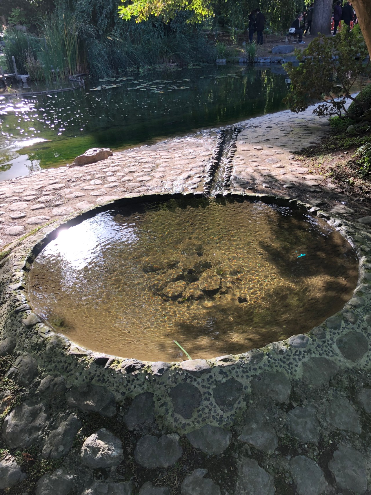 Et je me suis purifiée devant ce rond d’eau dont un filet s’échappe et file vers le lac pour y rafraichir et régénérer l’oxygène des poissons. Un monde reposant malgré la foule.