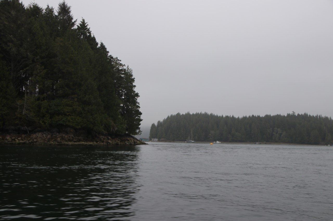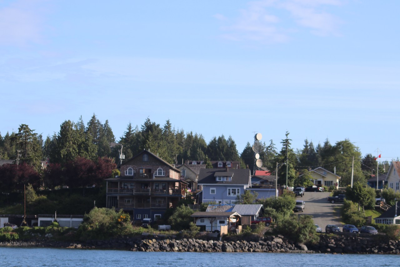 Nous sommes revenus vers la ville de Tofino, avons passé devant le phare, les maisons le long de la plage et sommes allés nous accoster au ponton. Le soleil commençait à percer.