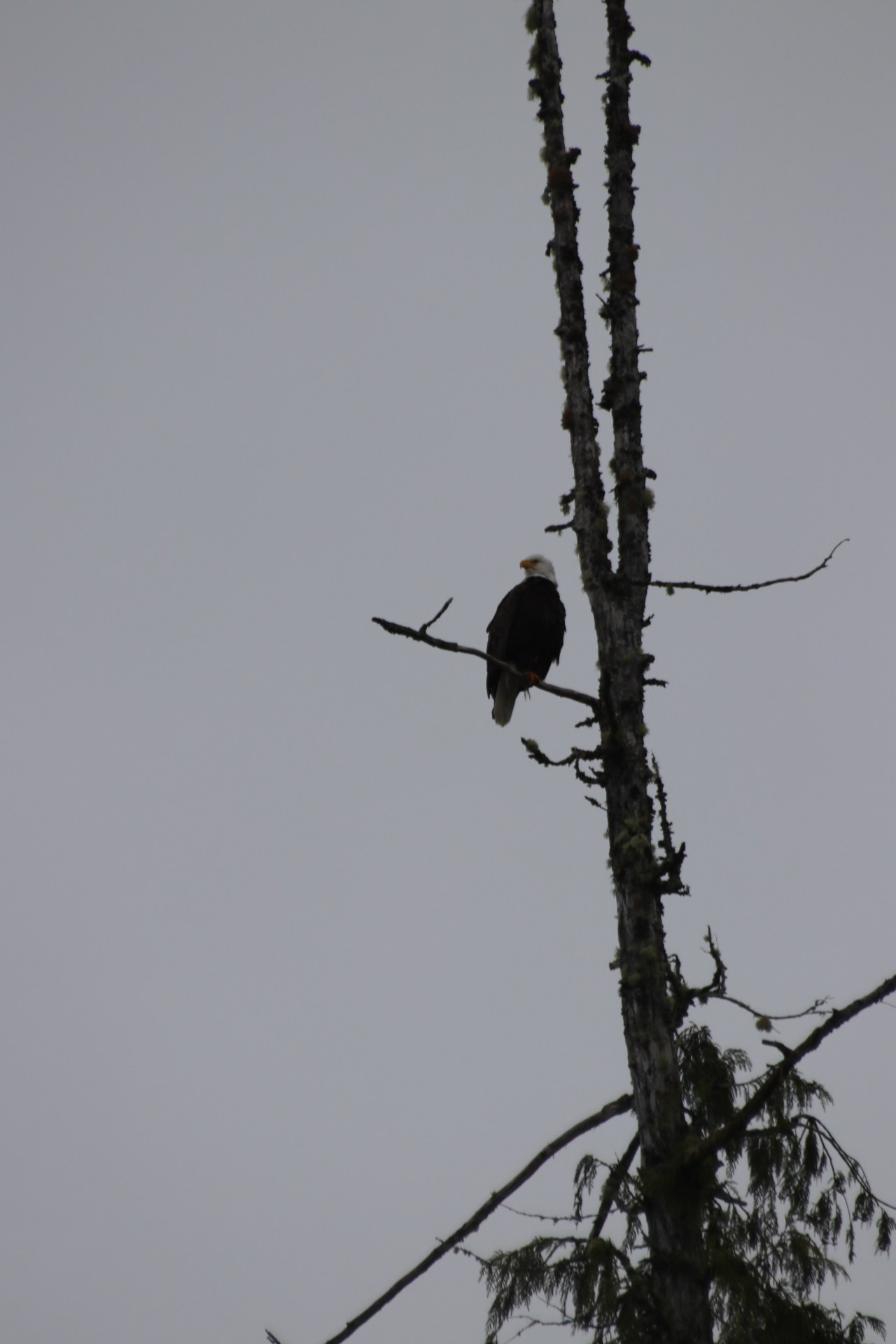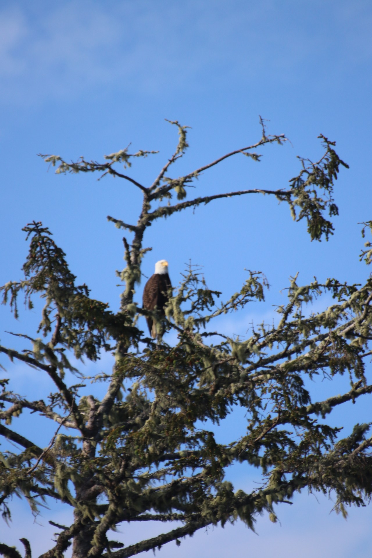 Et nous sommes rentrés au port nauséeux. Nous avons pu voir un aigle qui jetait un coup d’œil aux alentours perché sur sa branche ;