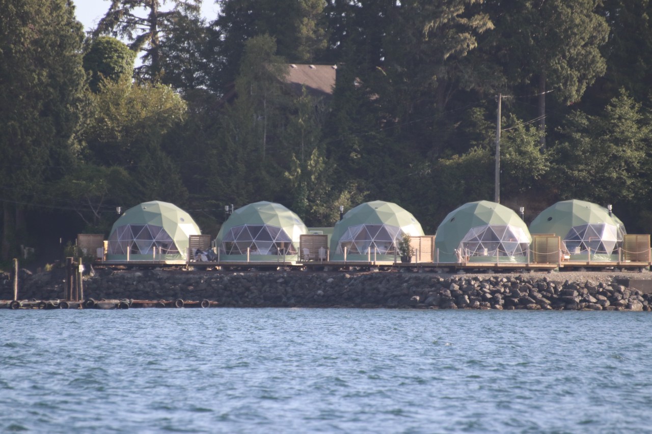 regarder Tofino vue de la mer et apercevoir les bulles chambre d’hôtel sur le bord de mer.