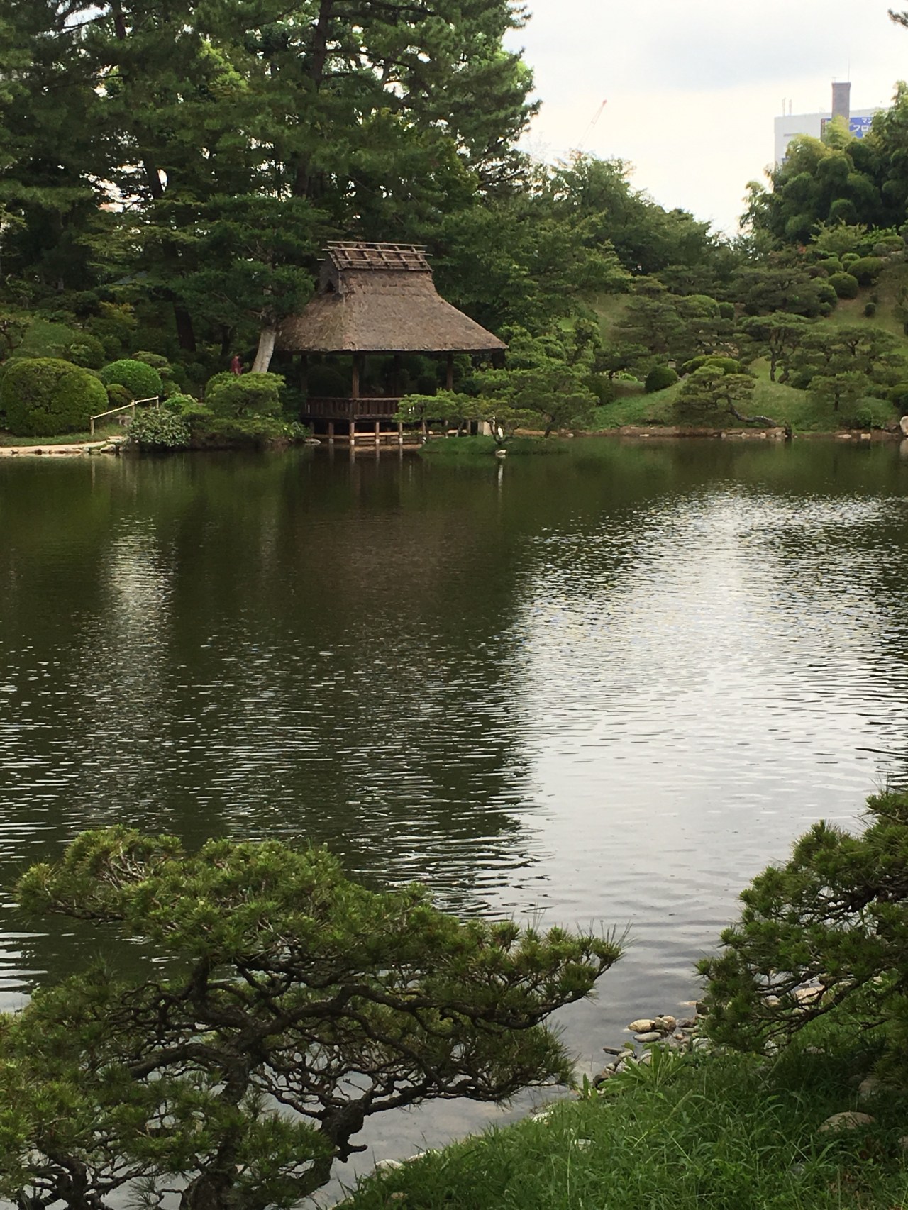 Ce jardin Shukkeien qui fait honneur au maitre de cérémonie du thé Ueda Soko a été construit en 1620. Il est fait sur le modèle chinois de Hangzhou. Le lac est composé de plusieurs ilots et tout autour des montagnes, des cottages, des temples et des salons de thé et des ponts qui enjambent le lac. Des carpes blanches, oranges, jaunes voguent dans l’eau du lac, des ibis blancs lissent leurs plumes et font les beaux ! Des petits crabes rouges escaladent les rochers en sortant de l’eau et les tortues nagent dans l’eau. Toute une faune aquatique, volante vit dans ce microcosme. Et puis le pont rouge japonais qui enjambe le lac est une pure merveille. Ce lieu est magique et reposant. Il fait bon y marcher et jouir du paysage. Des mariés viennent dans ce lieu. Il est aussi marqué car on a retrouvé des corps calcinés par la bombe A. C’est devenu un lieu de souvenir et de recueillement. Je me suis assise à plusieurs endroits pour m’en imprégner. Et me remémorer cet endroit est un véritable plaisir. Je refais le voyage des mois plus tard avec un engouement toujours aussi fort !