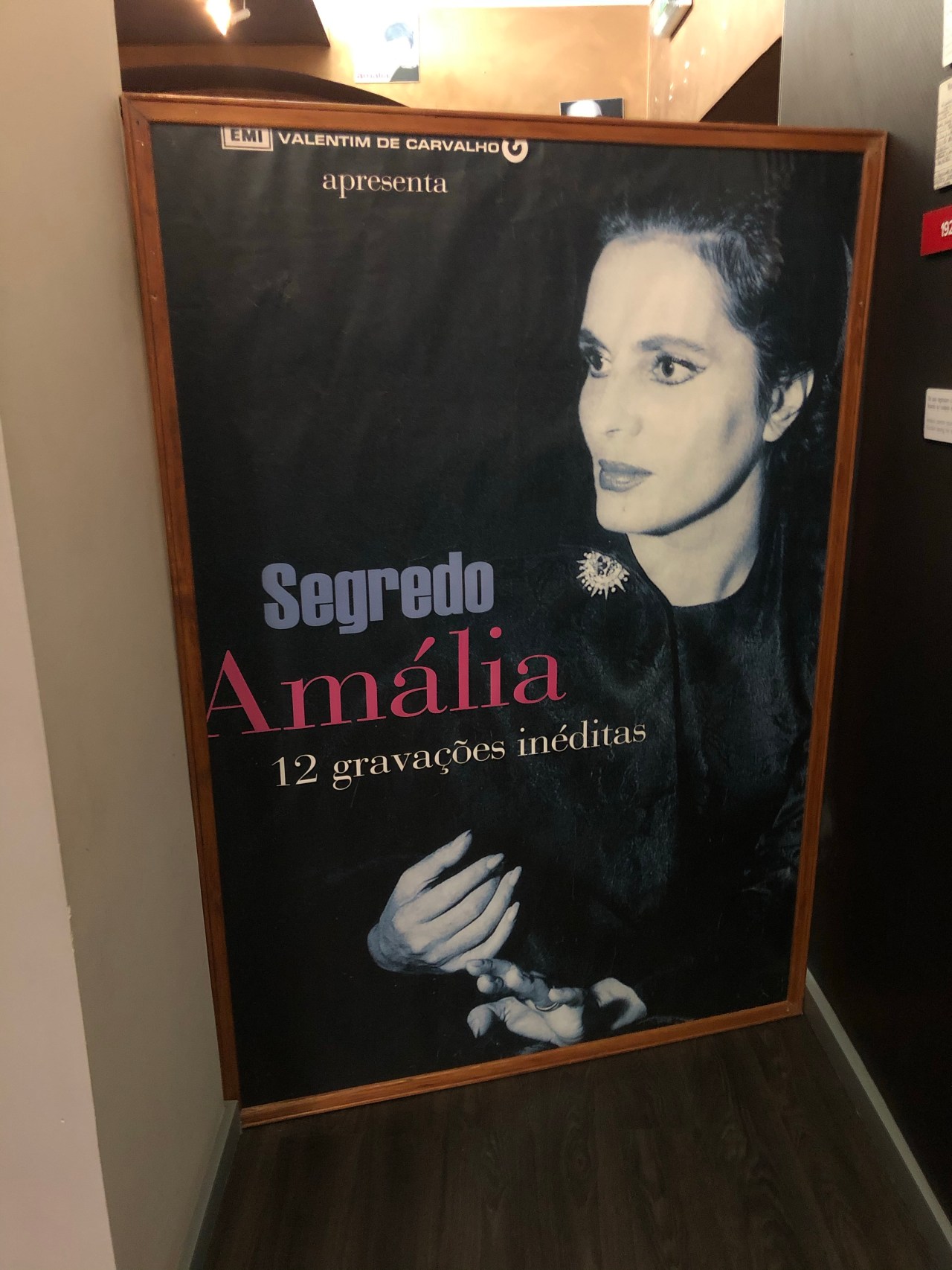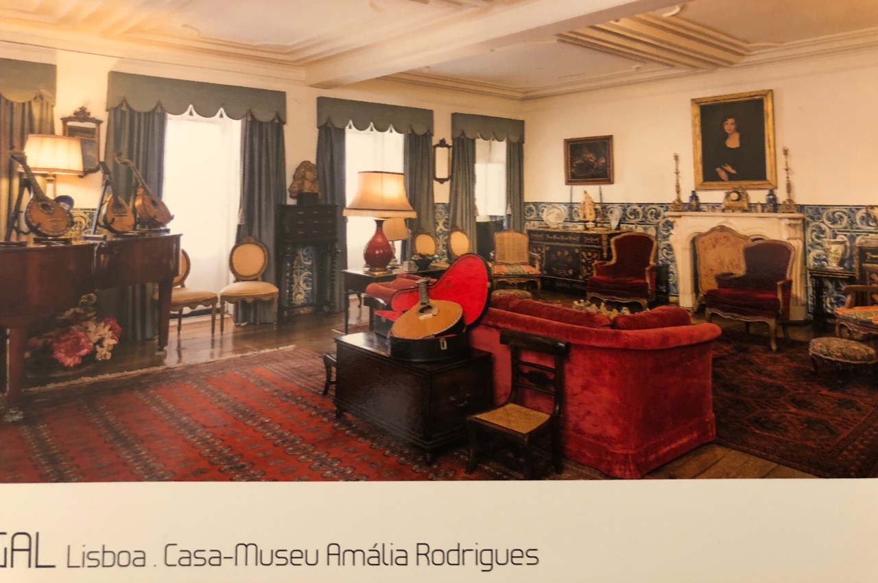 En haut d’un escalier on entre dans le hall qui mène au salon où l’on voit le piano qui l’accompagnait (elle ne savait pas jouer d’aucun instrument de musique) ; son premier châle noir de fadiste et tous les instruments de musique (guitare à douze et six fils pour le fado portugais, violon, mandolines…) ; le mur à mi-hauteur couvert d’azulejos bleus, donnant sur la rue.