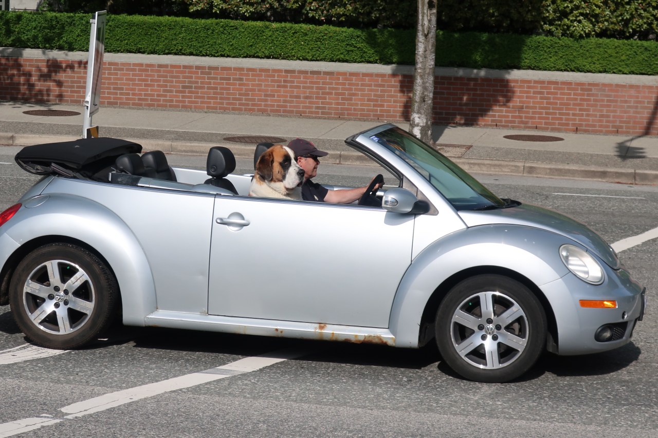 Et celui qui m’a le plus fait rire : en voiture avec son chien mastoc, assis sur le siège avant, à côté de son maître droit comme un i. On se demande qui du maitre ou du chien conduit !