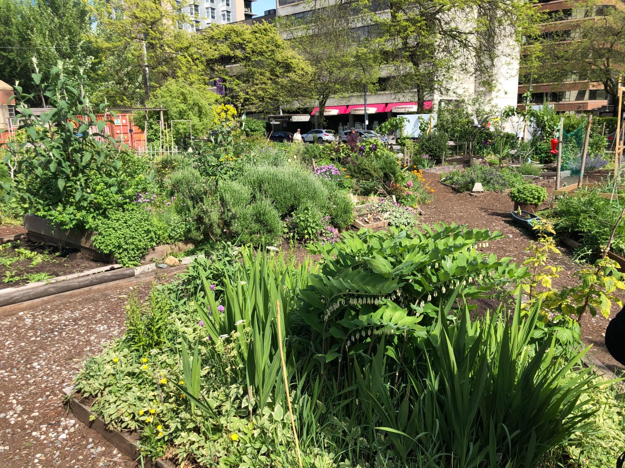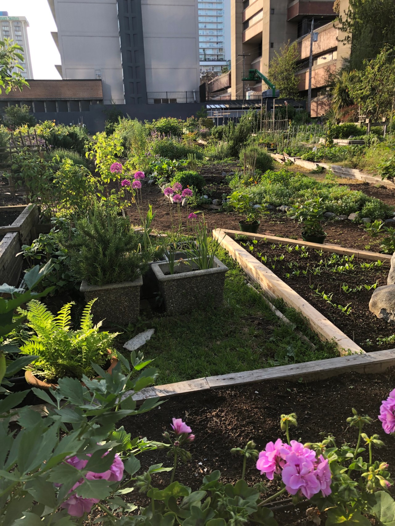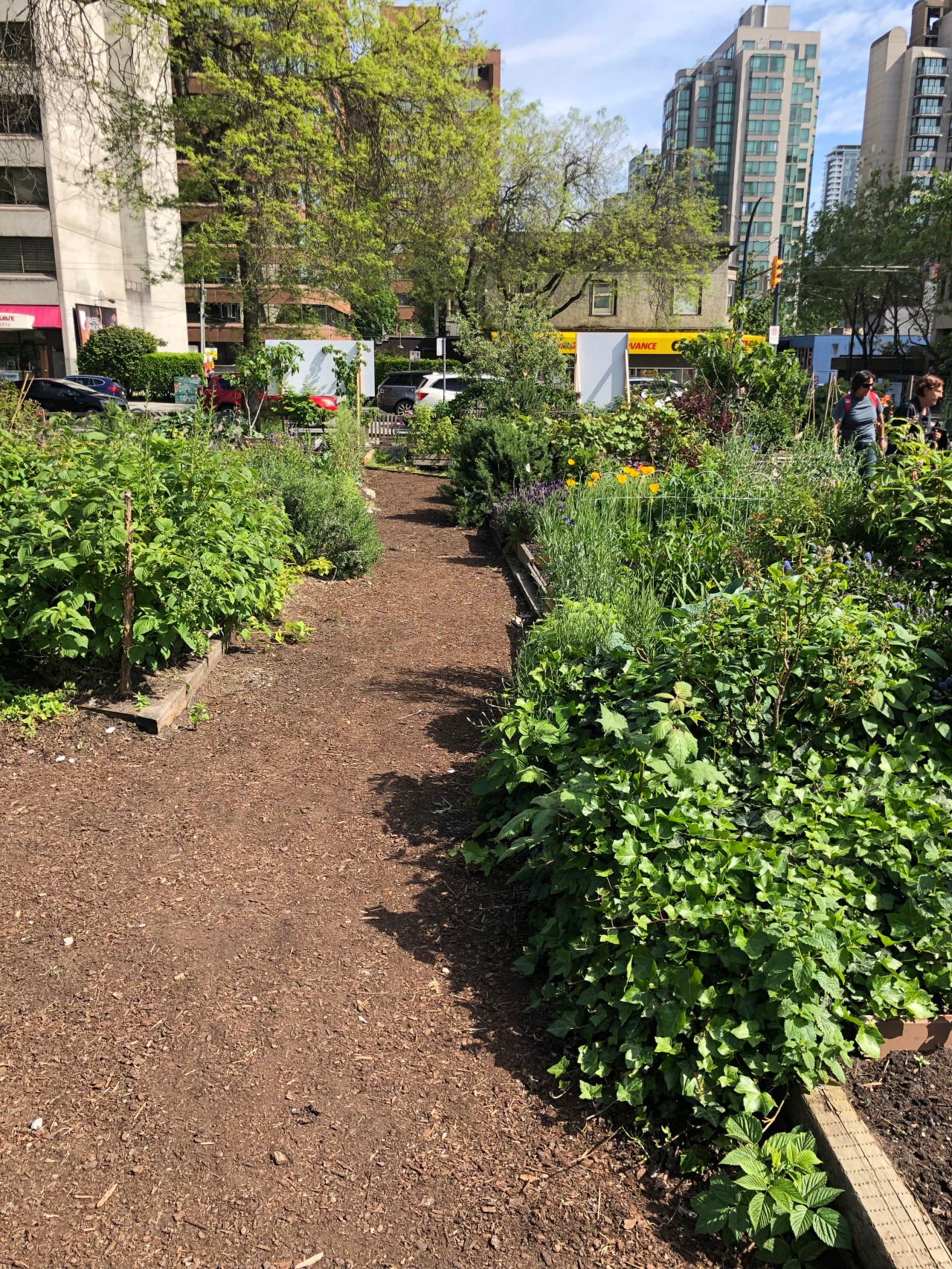 Il y a aussi les jardins des communautés où les personnes qui ont un lopin de terre viennent gratter la terre, y planter des fleurs ou des légumes ; papoter entre amis ou co-locataires et arroser leurs plantations. Je dois dire que cet endroit est véritablement un havre de paix en plein centre ouest de Vancouver où il fait bon respirer. Et puis les bordures de ce jardin sont décorées de manière très attractive avec plein de slogans remplis de bonheur : espoir, joie, aimer ce que vos faites, beau, je suis ailleurs et je reviens dans cinq minutes, la vie n’a pas besoin d’être parfaite pour être magnifique. Soyez heureux, soyez lumineux, soyez-vous ! J’en passe et des meilleures. Ça vaut le coup de les lire et de passer du temps car vous vous sentez heureux, léger et plein de vitalité intérieure. Et puis les potagers sont ornés de petites filles, de chats ou de lapins en bois peints. Petit clin d’œil aux enfants et leur plaisir naïf. Puis relevant le nez j’aperçois deux pigeons amoureux (ou pas), assis sur le haut d’une séparation en grillage, se serrant l’un contre l’autre et roucoulant. L’endroit me porte encore et je pense souvent que nous devrions à Paris mettre plus de verdure et de communauté entre les hommes qui y habitent.