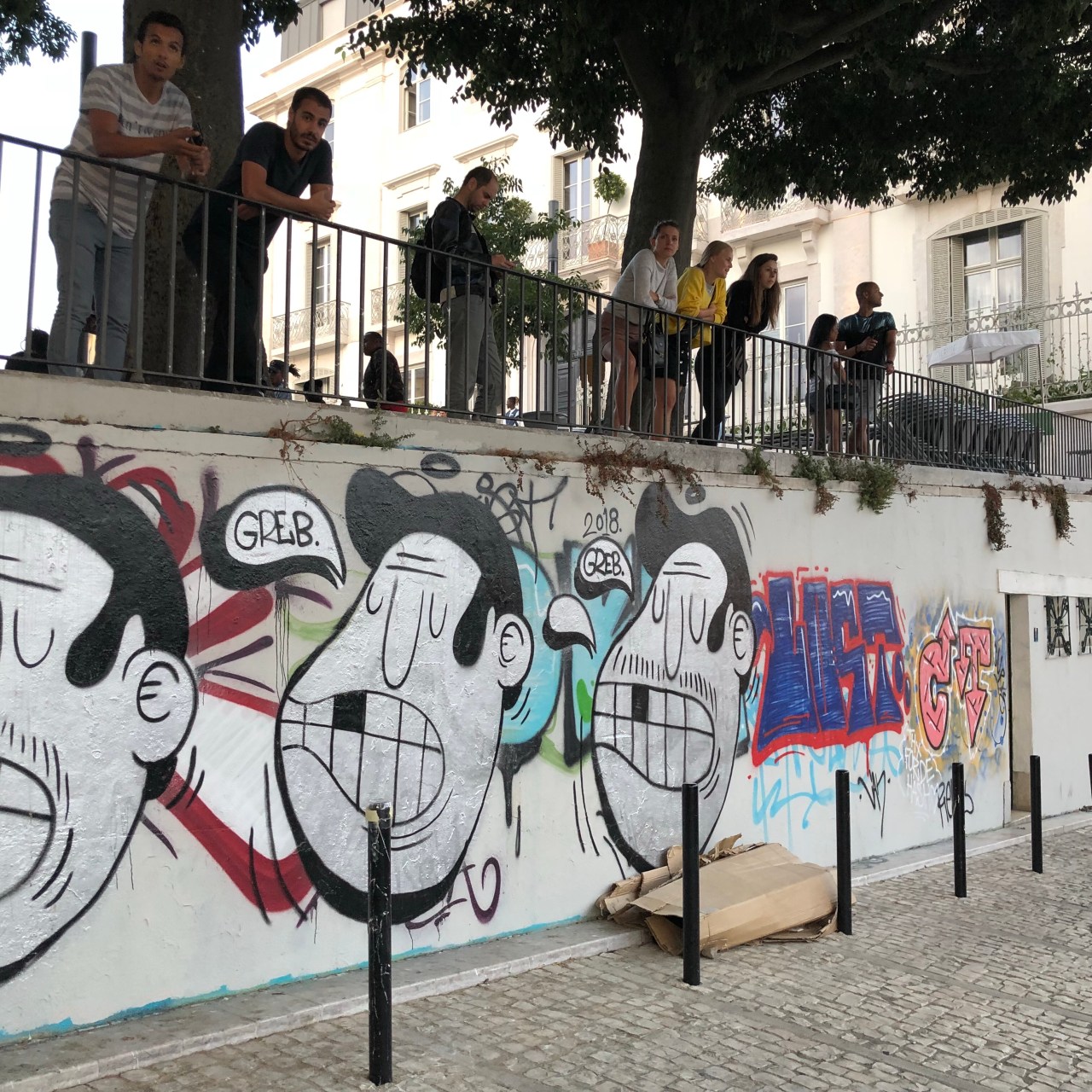 Lisbonne est un bonheur pour celui qui regarde les murs et surtout lève les yeux sur les œuvres de Street-art.