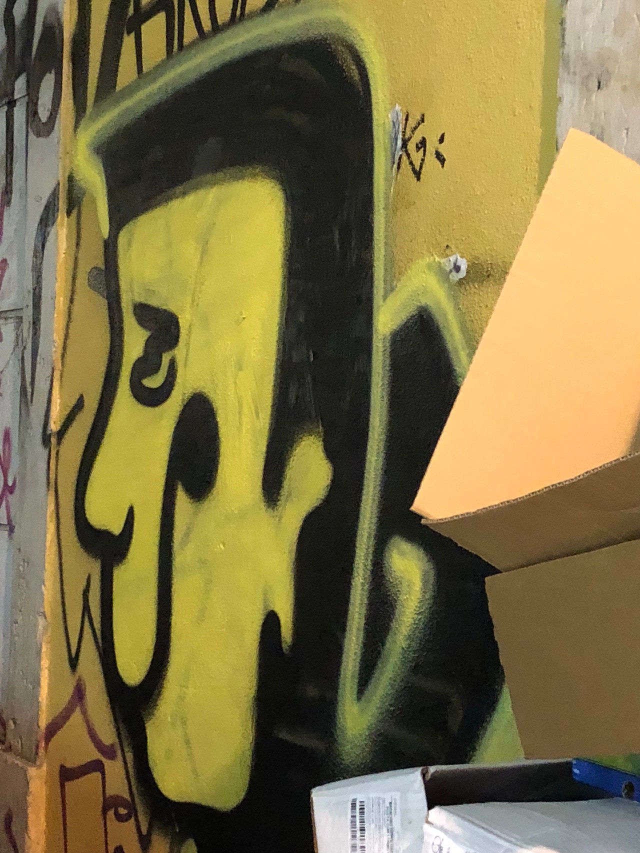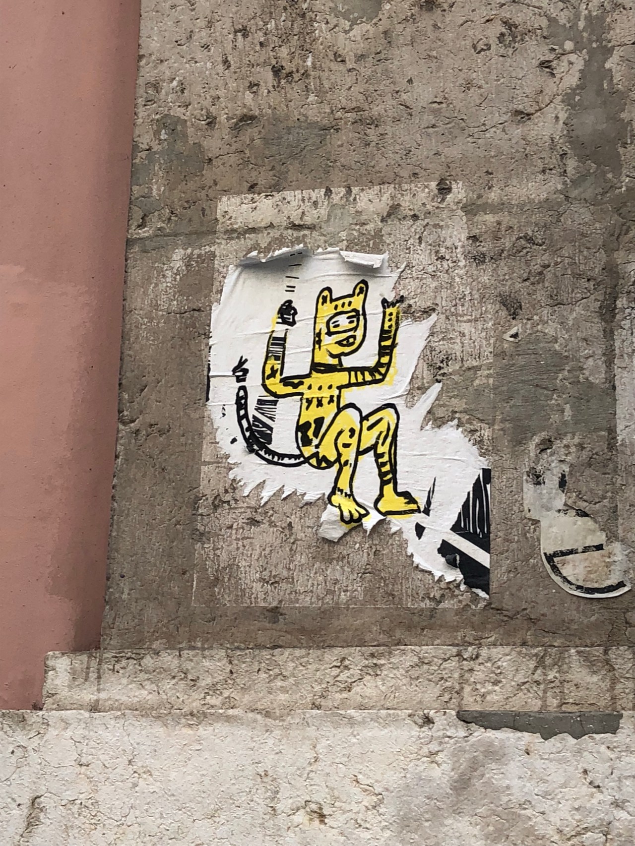 Toujours dans le Bairro Alto j’ai découvert un autre visage jaune avec une sorte de bouche ou de moustache montante. On dirait une coupe à bière ! Juste mon imagination qui parle !