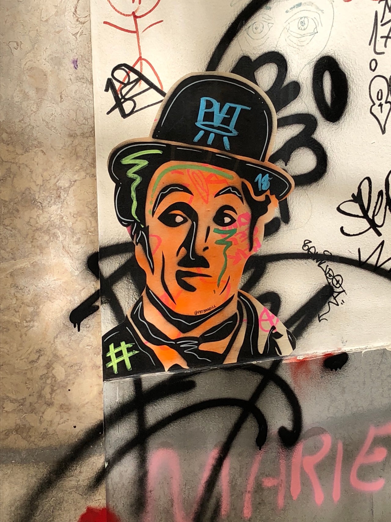 J’ai aussi croisé Charlie Chaplin avec son chapeau des années trente dont le visage était colorié en orange.