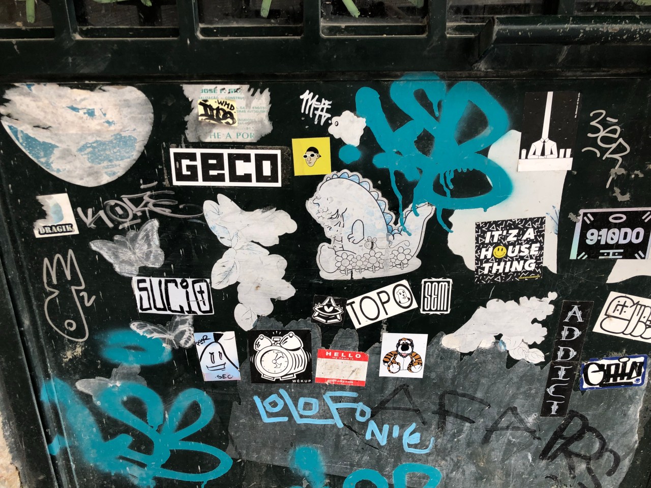 Et puis des grands cœurs rouge et noir qui s’alignent sur les murs des maisons. Ou bien des sortes de papier collé sur les murs et qui représentent un peu tout. Ou bien des lettres avec des phares, des portraits de personnes .