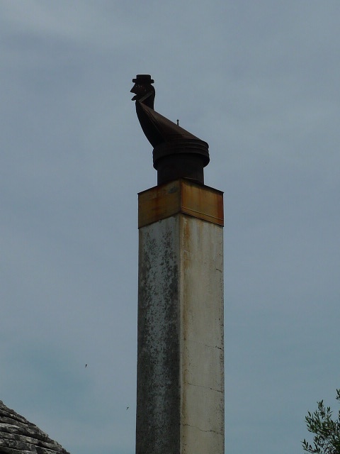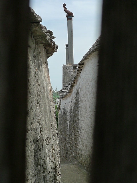 Et puis on repartait vers le quartier Aia Piccola plus typique et habité. Des ruelles pleines de plantes grasses, yuccas très hauts, des cactus piquants et des rangées de vignes grimpantes qui à l’automne doivent donner de bonnes grappes de raisin. Et puis des sorties de cheminées, sorte de girouettes avec une sorte d’animal sur le dessus.