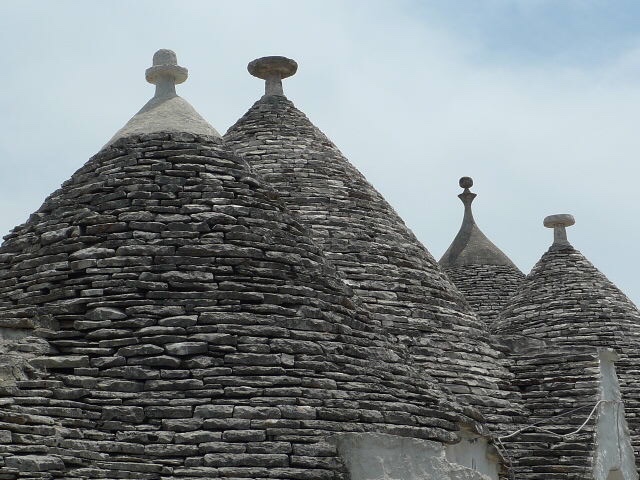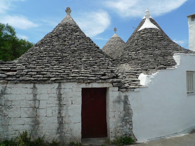 Les trulli sont disséminés tout au long de la vallée de l’Itria, les concentrations les plus élevées et les exemples les mieux préservés de cette forme architecturale se rencontrent dans la ville d’Alberobello. Les trulli (trullo au singulier) sont des huttes en pierre sèche traditionnelles, surmontées d’un toit en encorbellement. Leur style de construction est spécifique à la vallée de l’Itria, dans la région des Pouilles.