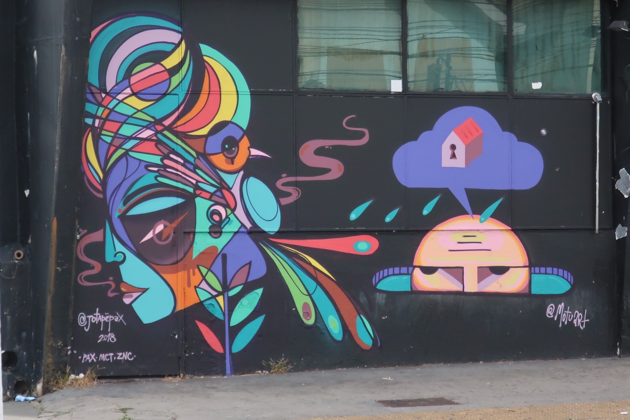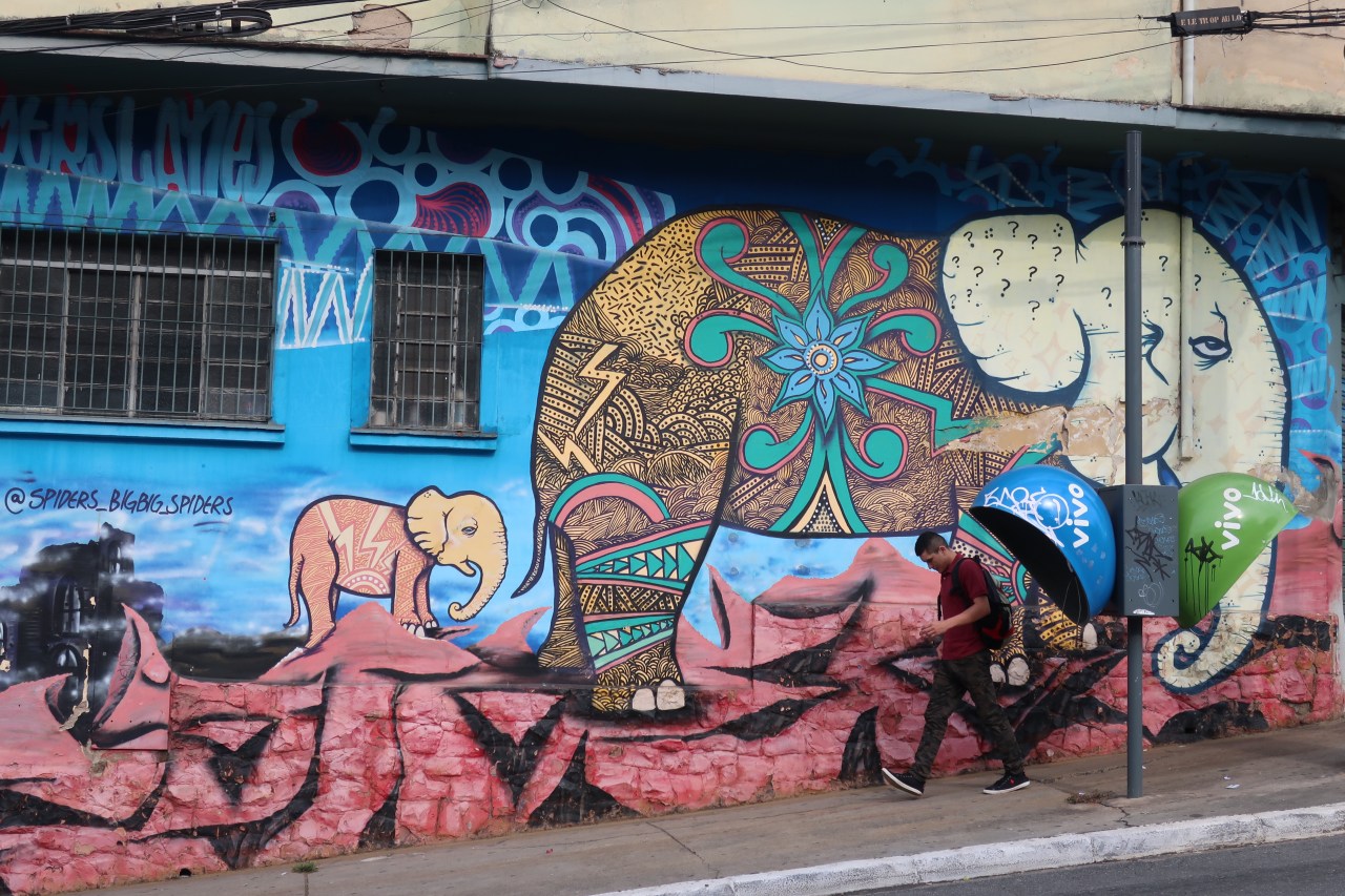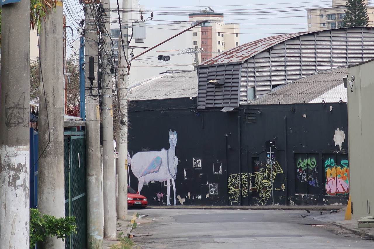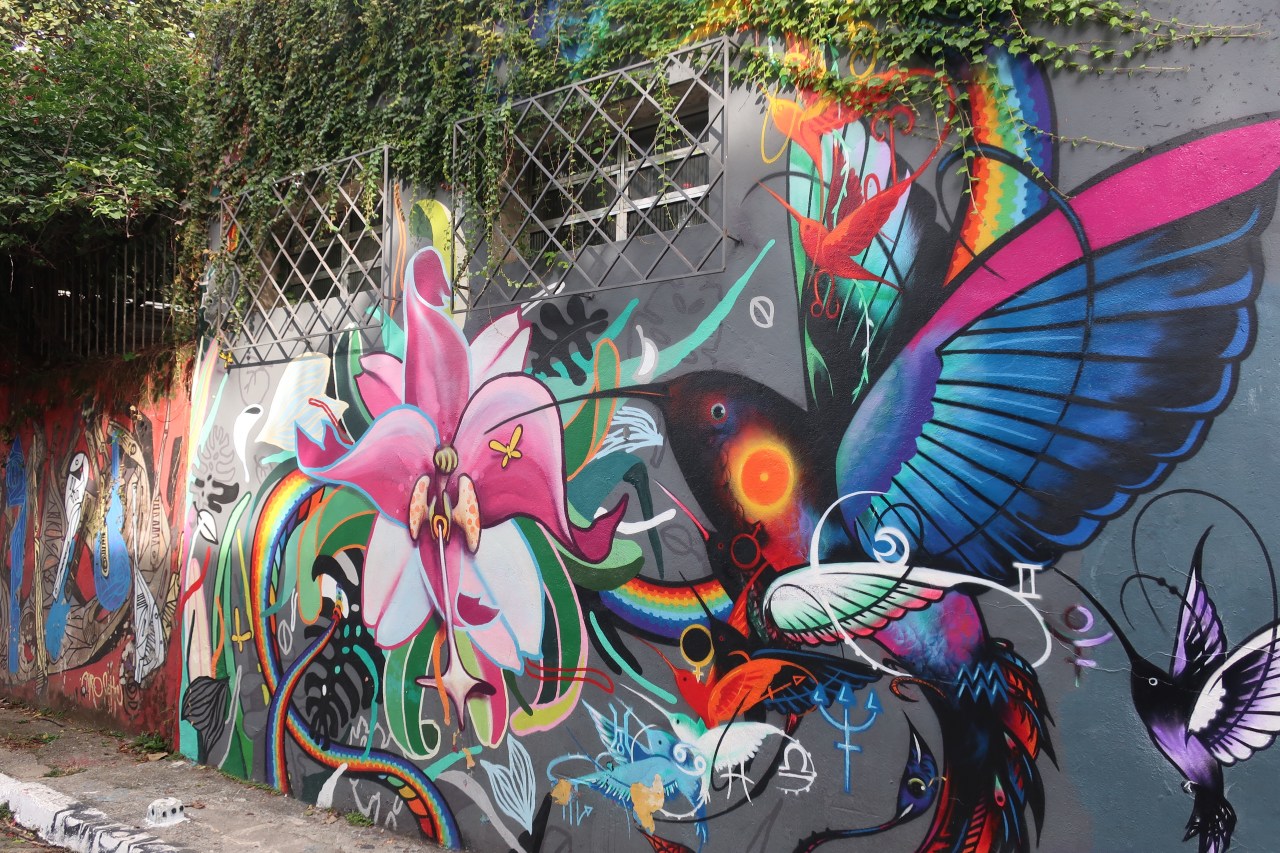 Mais surtout dans le quartier Villa Madalena les graffitis sont regroupés à plusieurs endroits. Près de l’institut Tomie Ohtake, la rue juste en dessous, permet de voir des aigles stylisés sur des immeubles de 10 étages ;
