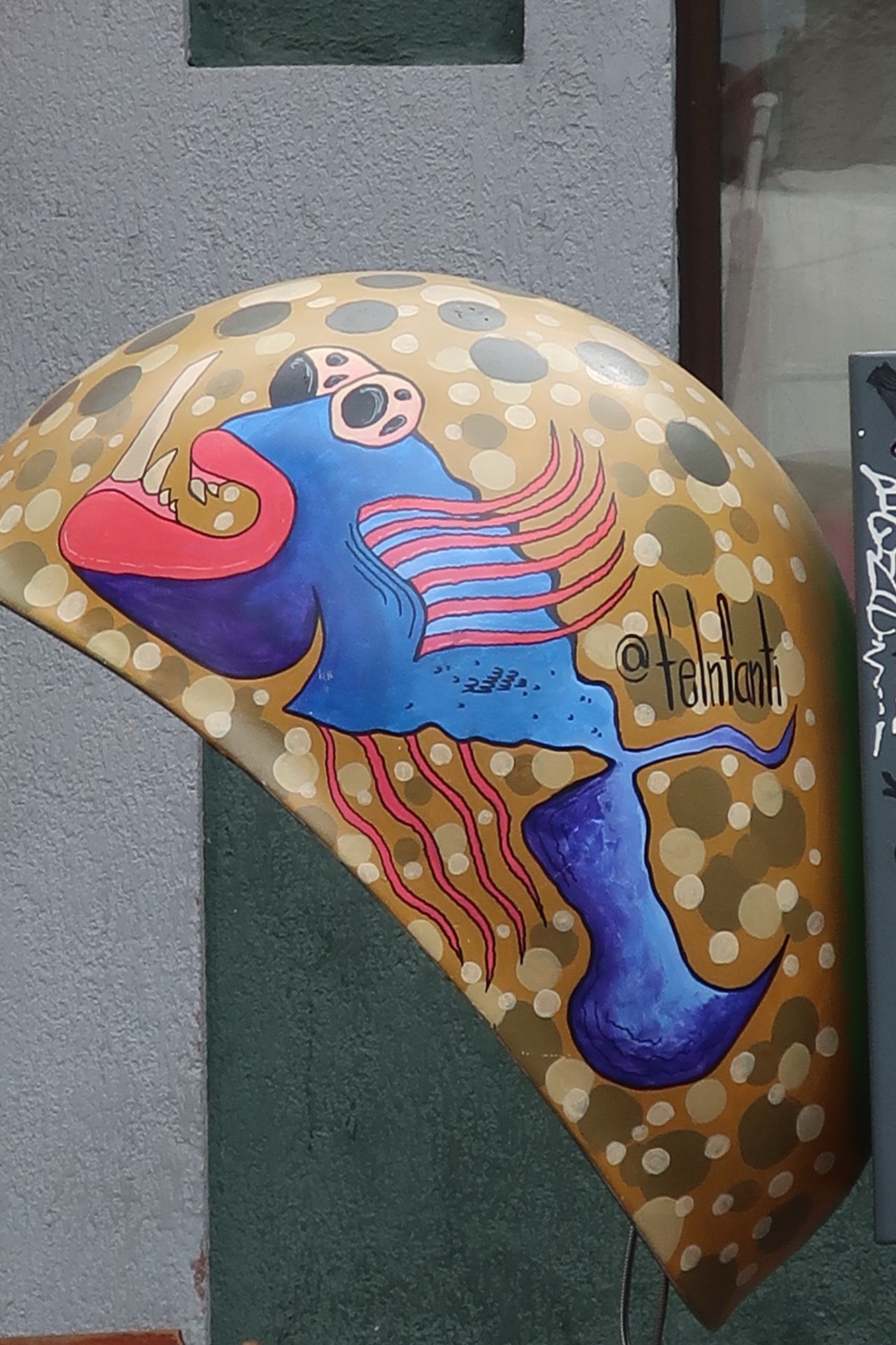 Des cabines téléphoniques avec la mer et un poisson-chat ! Même les boites aux lettres sont entourées de street-art ! Ainsi que le lieu où l’on entrepose ses poubelles ! pas un bout de mur n’est perdu !