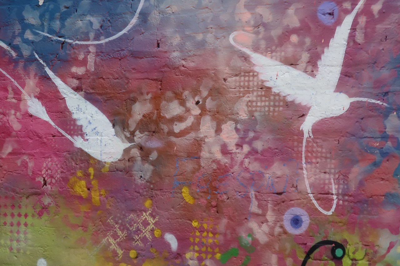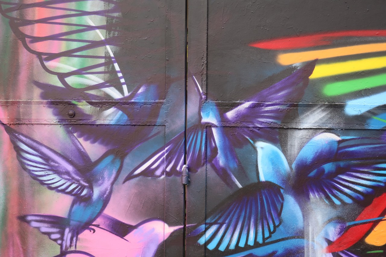 C’est une ville d’une grande créativité et très diverse en matière de street-art. Et j’adore aller le nez au vent à la découverte de l’art sous toutes ses formes ! C’est un leitmotiv familier, qui m’appartient et me rend heureuse, me faisant flotter et voler, oublier le monde tel qu’il est, entrer dans un monde fantasmé voire fantastique où s’oublier en est la clé.