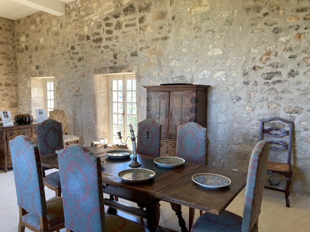 Car le clou de ce château c’est la vue plongeante sur les environs de Lacoste. On admire les collines d’où émerge Bonnieux ; on peut deviner les champs de vignes qui font un rosé si particulier ; les forets de hêtres et les oliviers qui ondulent sous le vent.