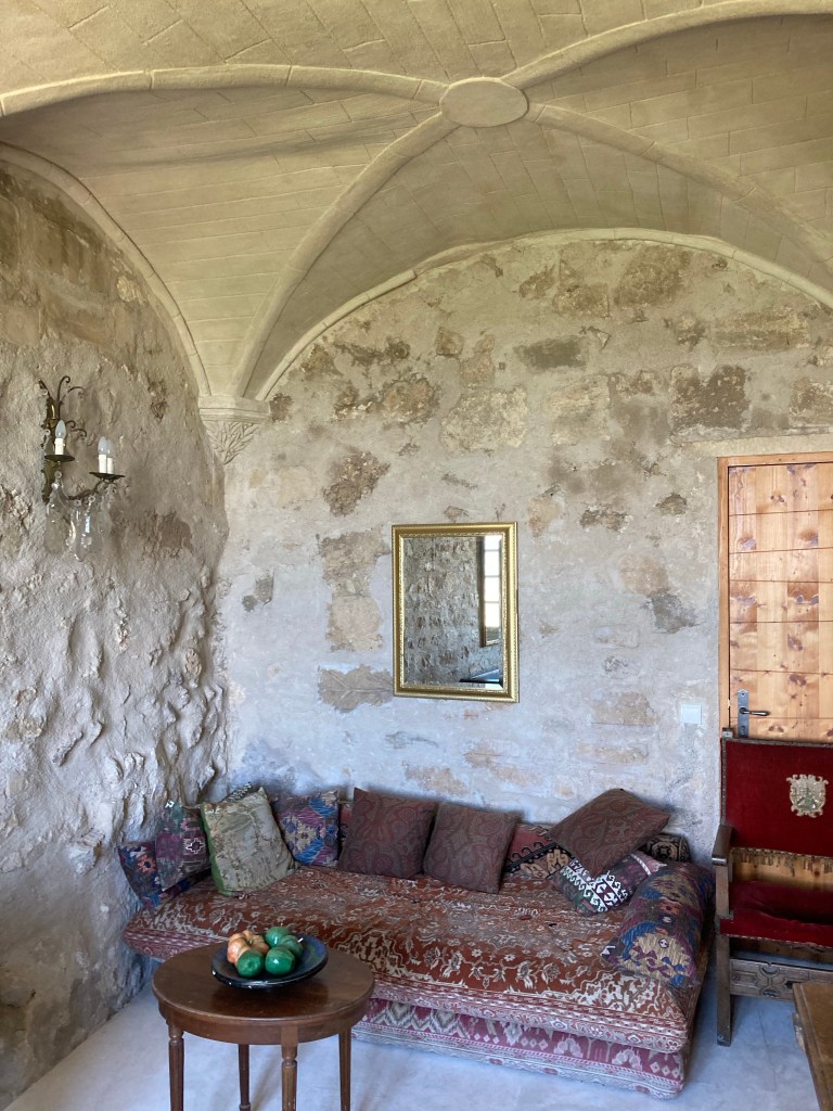 Puis on monte un escalier très raide pour atteindre le premier étage où un salon « ottoman » vous attend et dont les sofas vous tendent les bras. Les voutes du plafond vous transportent dans la Renaissance et vous envoutent.