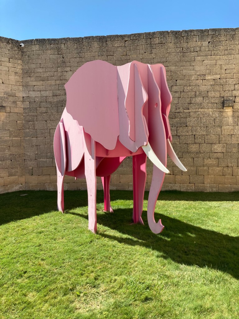 Passé la porte on est conquis par les œuvres qui siègent là et vous font signe d’entrer et de vous délasser. Un éléphant rose vous montre le chemin et j’en ressens comme un clin d’œil à l’Inde qui m’est si chère.