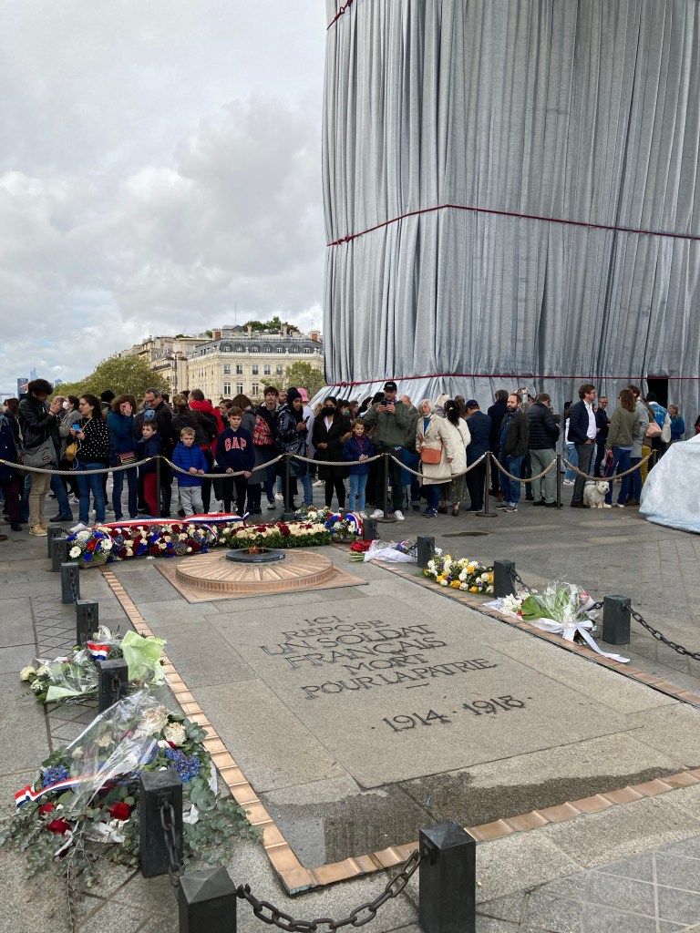 Pour la première fois de ma vie nous pouvons marcher sur la place de l’Etoile qui est fermée aux voitures et tourner autour à pied. Incroyable et tellement agréable ! En faire le tour plusieurs fois, marcher sur la route, traverser la place et pouvoir atteindre la tombe du soldat inconnu sans le risque de se faire écraser.