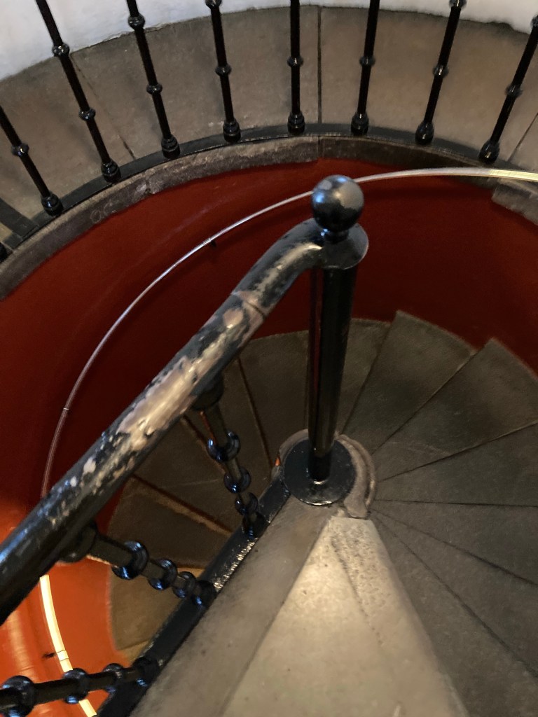 Pour arriver à la plateforme un tout petit escalier en pierre et en colimaçon aux murs rouges vous ouvre le firmament mais il faut savoir patienter pour avoir le feu vert et pouvoir grimper jusqu’à la plateforme. Et là oh la vue qui vous coupe le souffle.
