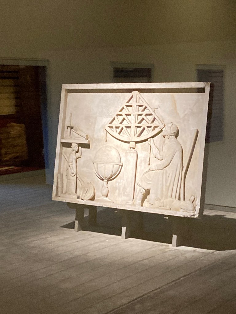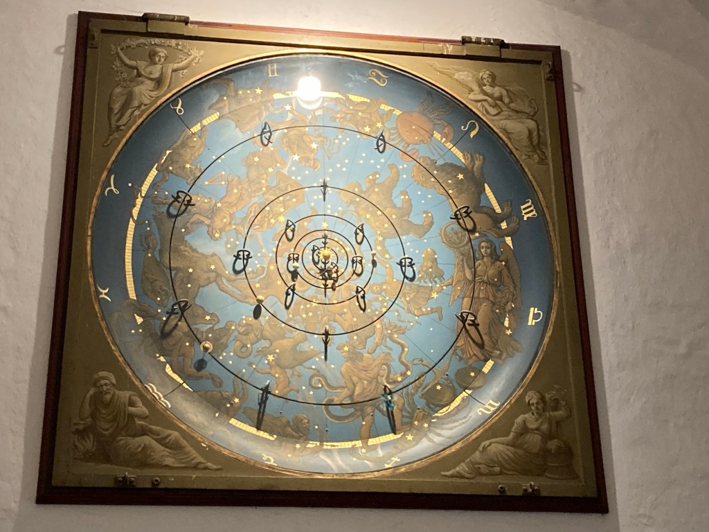 Avant d’atteindre la plateforme on peut voir la cavité centrale mais aucune envie de me plier en quatre pour la voir ; mais surtout voir le planétarium qui représente le système solaire avec le soleil en son centre. La petite balle blanche est la Terre. Il a été construit par l’astronome danois Ole Rømer.