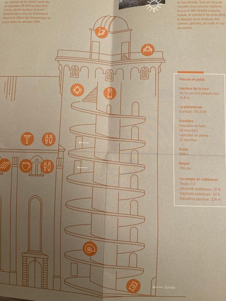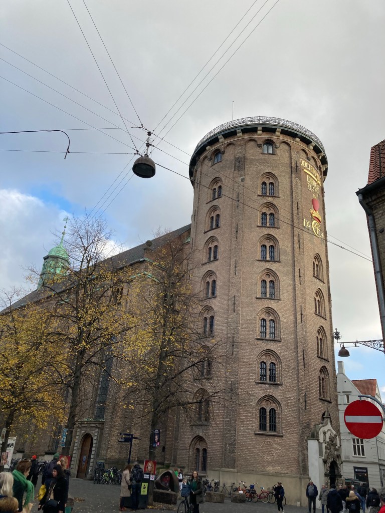Pour un peut d’histoire, la tour ronde fut édifiée dès 1642. Elle fait partie du complexe de la Trinité, cette fameuse église. Elle combine l’observatoire tout en haut de la tour, la bibliothèque au-dessus de l’église et l’église la Trinité elle-même.