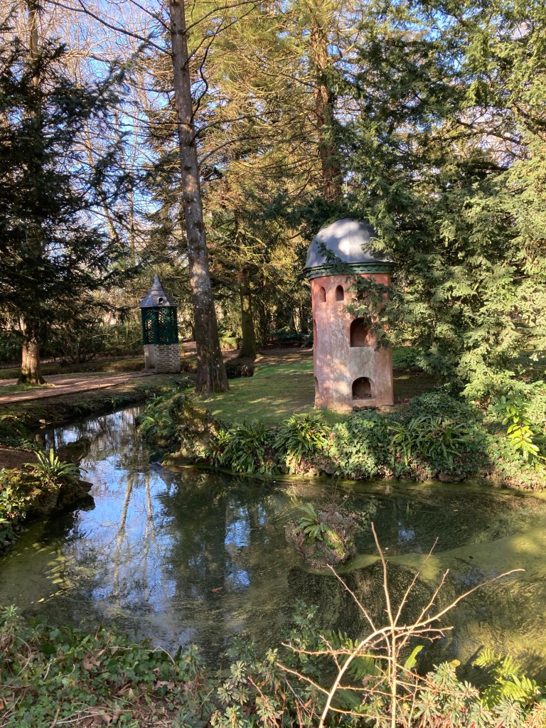 Endroit surnommé le parc de Monsieur Swan qui dès l’entrée donne un air de Japon. Le morceau de tronc d’un arbre qui représente deux êtres enlacés, les reflets de l’eau qui captivent, les mini pigeonniers ou les maisons des archers qui attirent l’œil. Un endroit où il fait bon se poser et se reposer sur un banc. Ecouter les oiseaux babiller, écouter le bruit des feuilles avec le vent, entendre le bruit de l’eau avec ses lacets dans le jardin, passer sur les ponts – tout incite au repos de l’âme. La nature commençait à s’éveiller avec les crocus mauves, les marguerites et les poules d’eau couraient le long de la rivière. Tout invite aux rêves et comme l’écrivait Marcel Proust : « Les lilas à demi cachés par la petite maison en tuiles appelée maison des Archers, où logeait le gardien, dépassaient son pignon gothique de leur rose minaret. Les nymphes du printemps eussent semblé vulgaires auprès de ces jeunes houris qui gardaient dans ce jardin français les tons vifs et purs des miniatures de la Perse ».