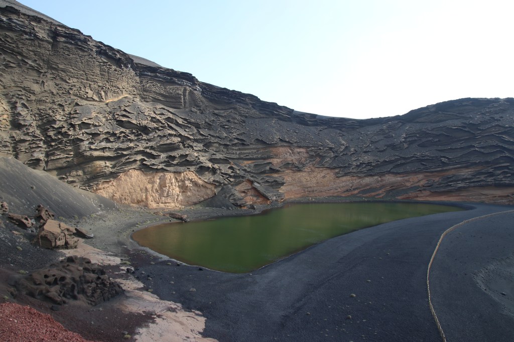Le vrai nom du Lago Verde est “La Laguna de los Clicos” et c’est une espèce d’amphithéâtre ouvert sur l’océan qui s’est formé à la suite des éruptions de 1730. En fait, la lagune verte fait partie du cratère d’un volcan.