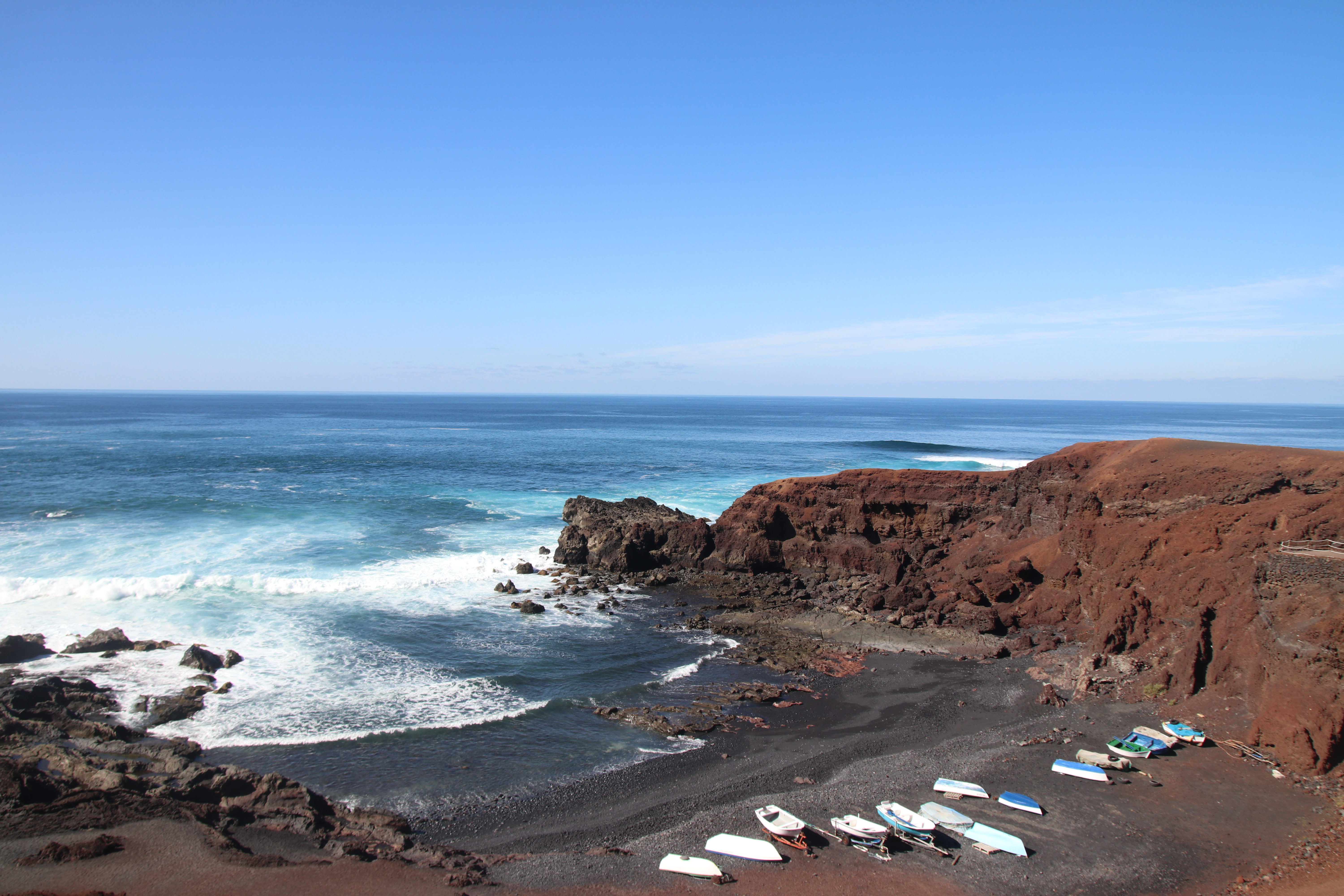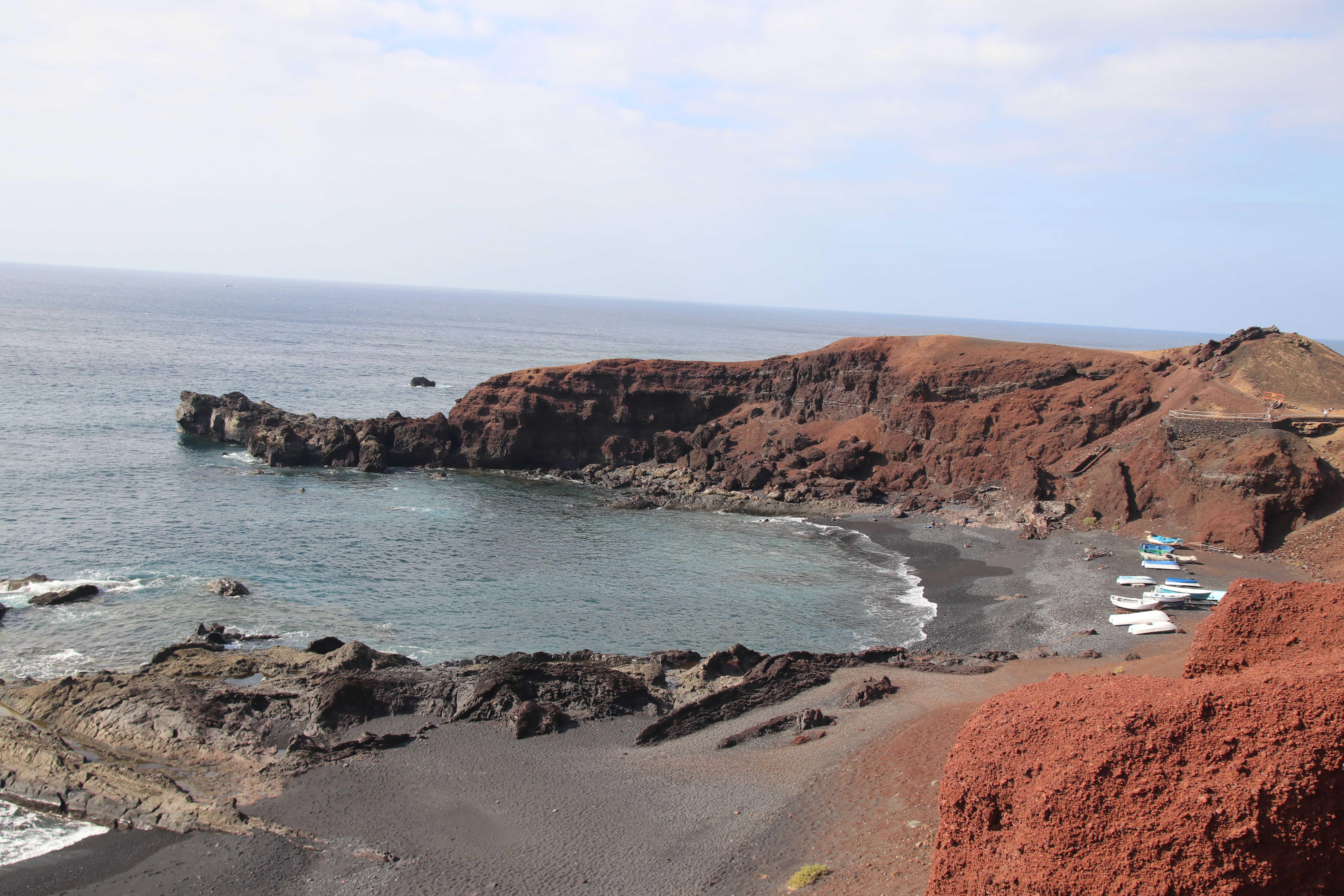 Il existe un endroit incroyable, coincé entre les roches noires, jaunes sable et rouges, et une plage de sable noir à l’entrée du village d’El Golfo. Il est situé au sud du Parc Timanfaya dans une région constituée de lave et d’éboulis.