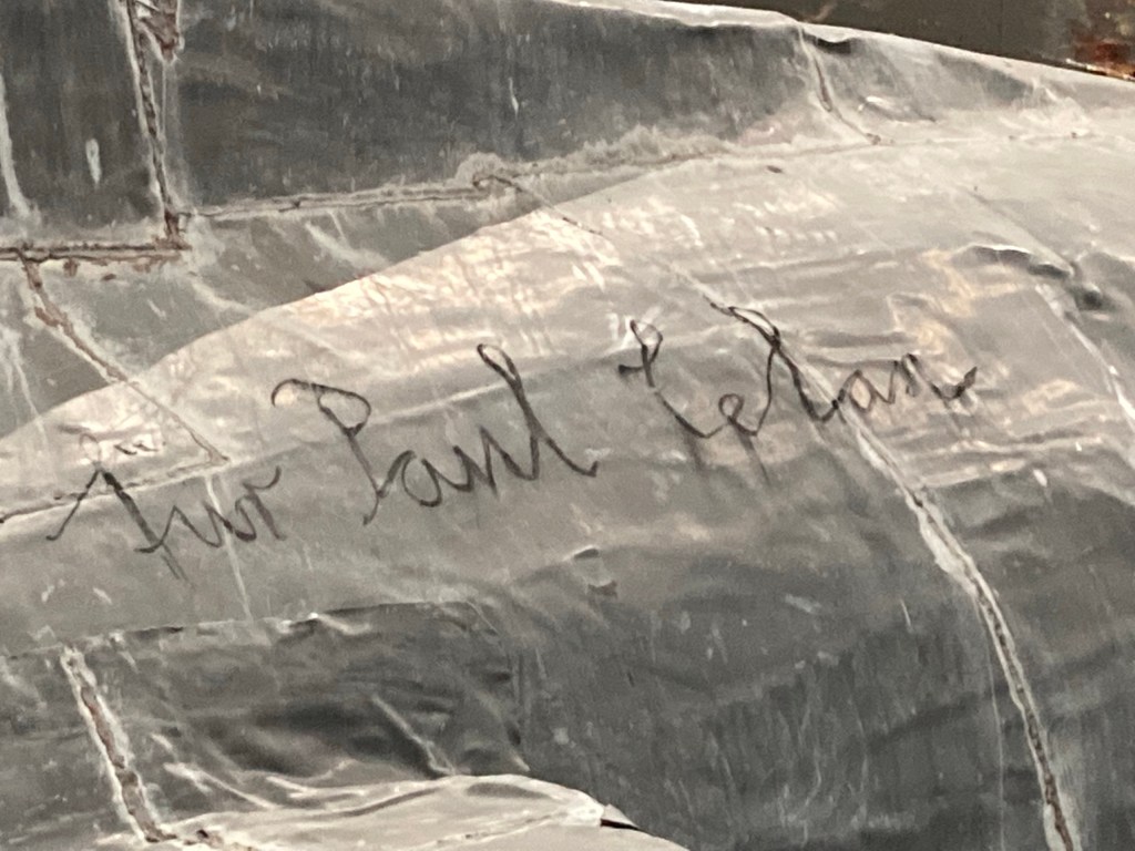 Cette exposition pour moi retrace la terrible seconde guerre mondiale avec sa lourdeur, sa noirceur, la destruction, les ruines, le froid avec la neige, les armes avec les pavots. Le bunker qui symbolise les fortifications du côté français comme allemand. Un rempart, un mur de l’Atlantide où plus tard les générations suivantes irons jouer dessus et feront des simulacres de guerre.