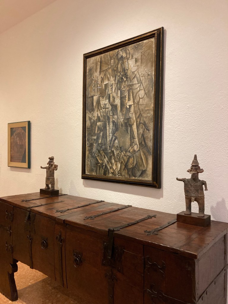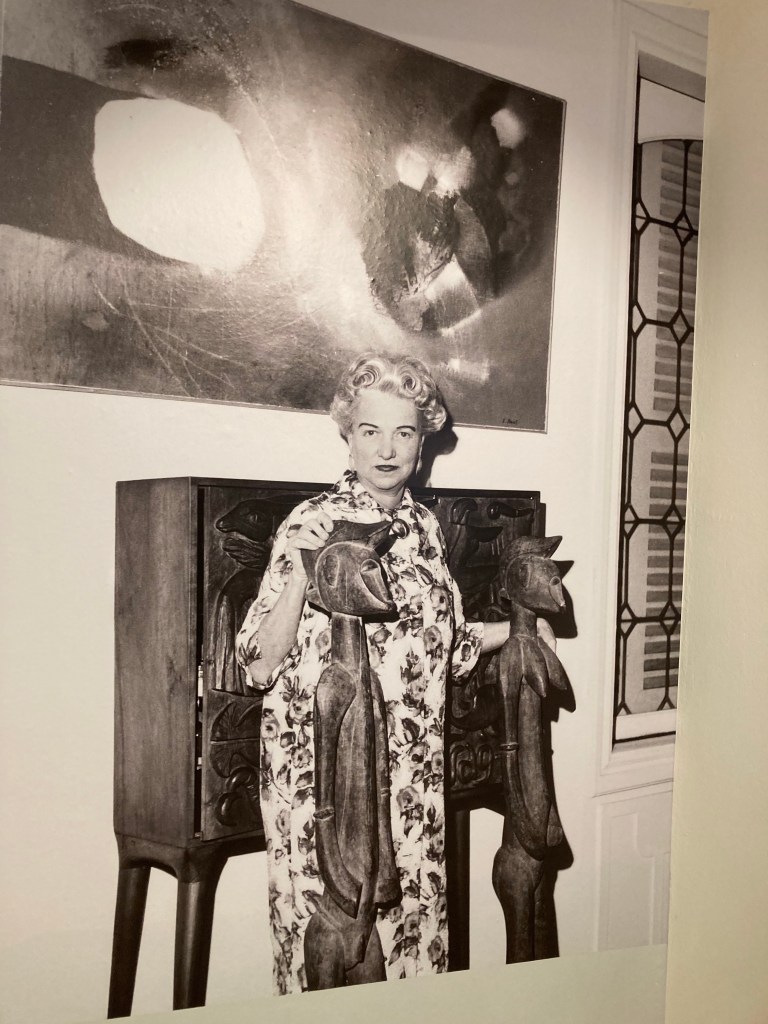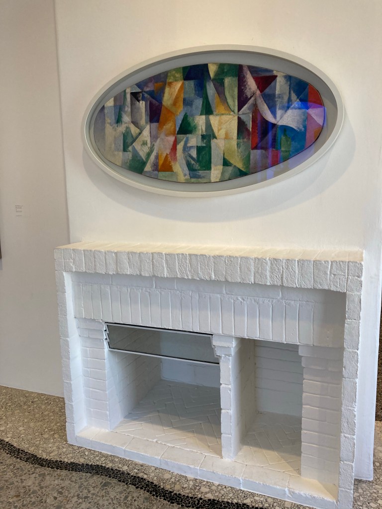 Dans le bâtiment qui servait de salon ou de salle à manger on y découvre des cheminées d’où surplombent des tableaux de différents artistes (Max Ernst, Delaunay….). De très beaux meubles de style chinois s’offrent à nous. L’entrée de la maison, elle est enluminée par un mobile de Calder ! Cela donne une impression que l’aluminium envoie des faisceaux de lumières un peu partout, amplifiés par les reflets de la grille sur le sol.