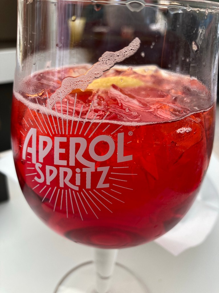 Je suis allée me reposer et profiter du lieu empreint de sérénité, en dégustant au café un spritz à la vénitienne tout rouge !