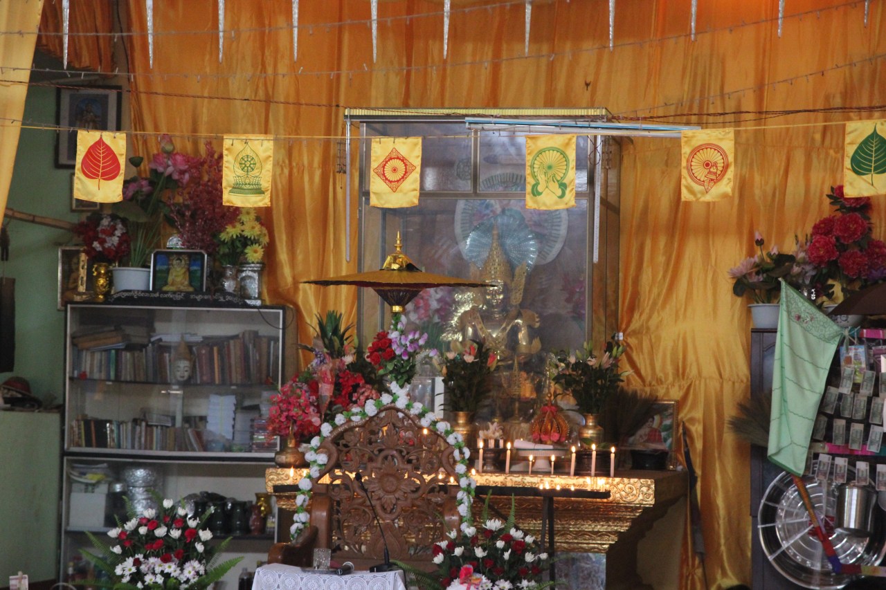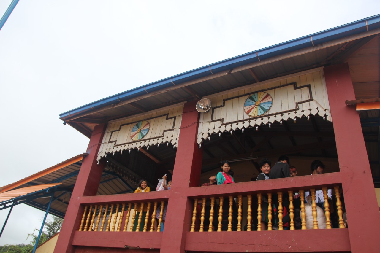 Et puis je montais les escaliers en bois pour me rendre au temple. Temple très coloré lui aussi – ce doit être la tendance des peuples des montagnes comme on peut en voir aussi au Vietnam dans la région des montagnes avec les Hmongs.