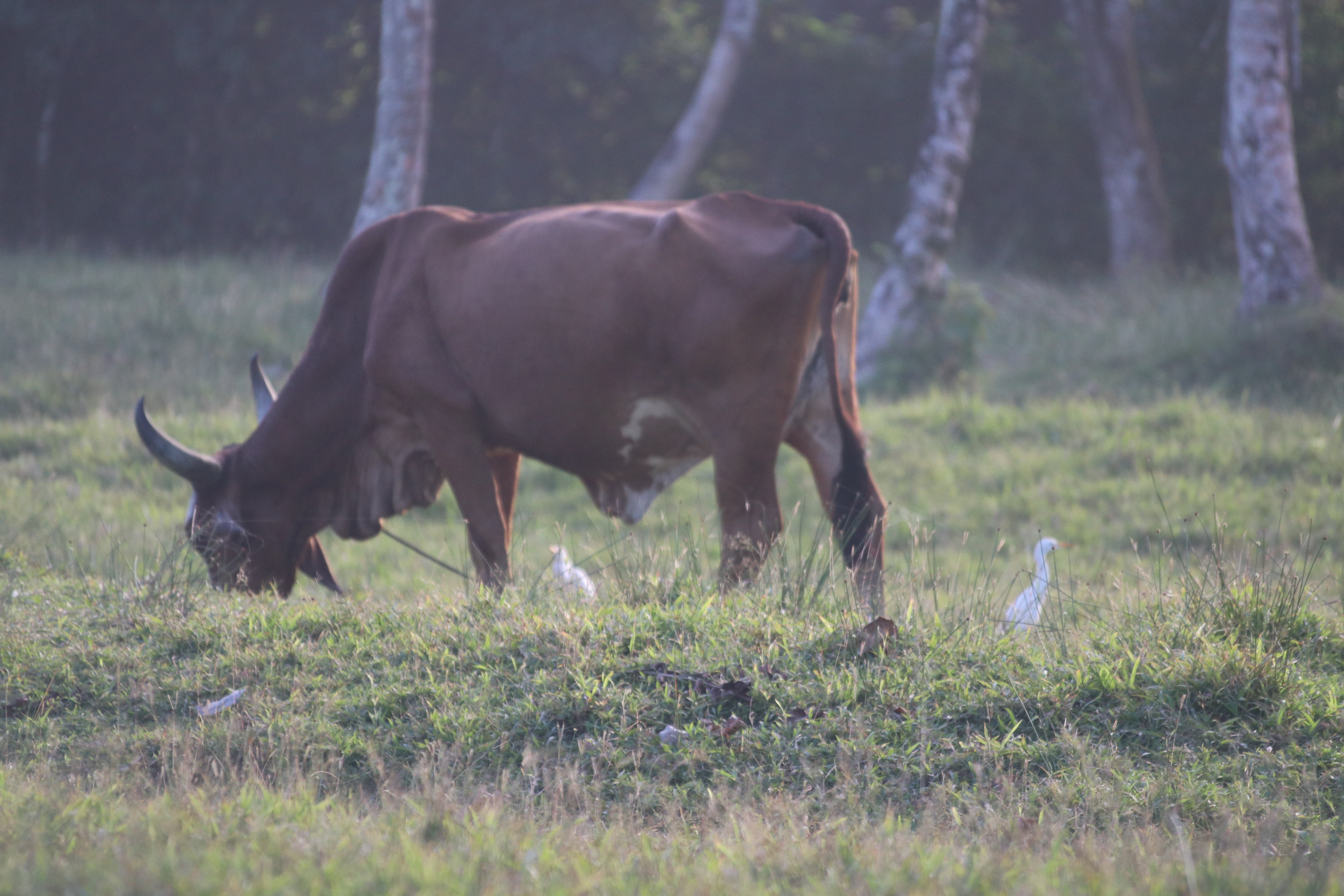 Des ibis blancs volent et s’approchent des vaches pour les nettoyer de leurs insectes. Ce ballet des ibis est majestueux et vous donne des envies de voler. Ils virevoltent, tournent puis reviennent se poser au sol.
