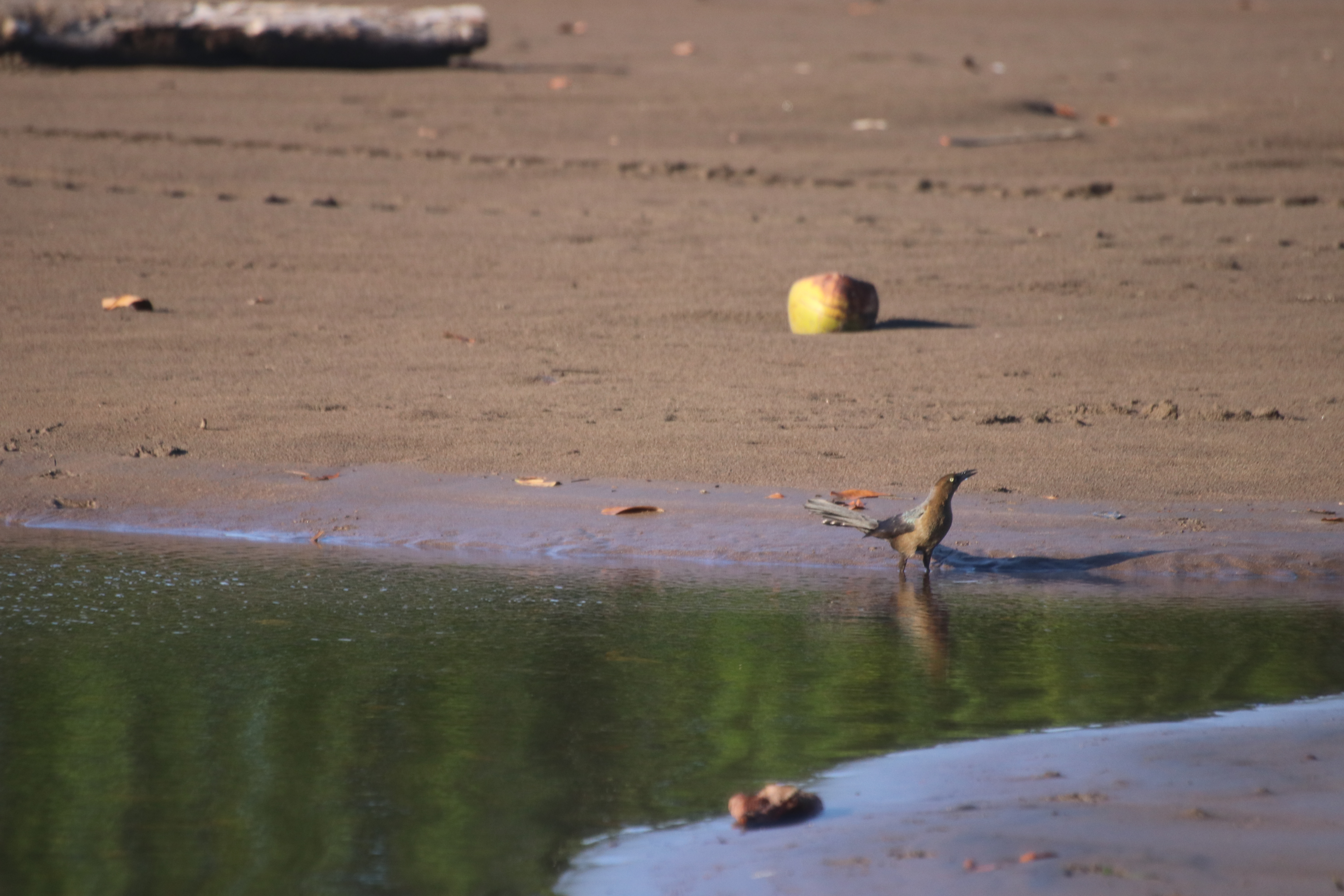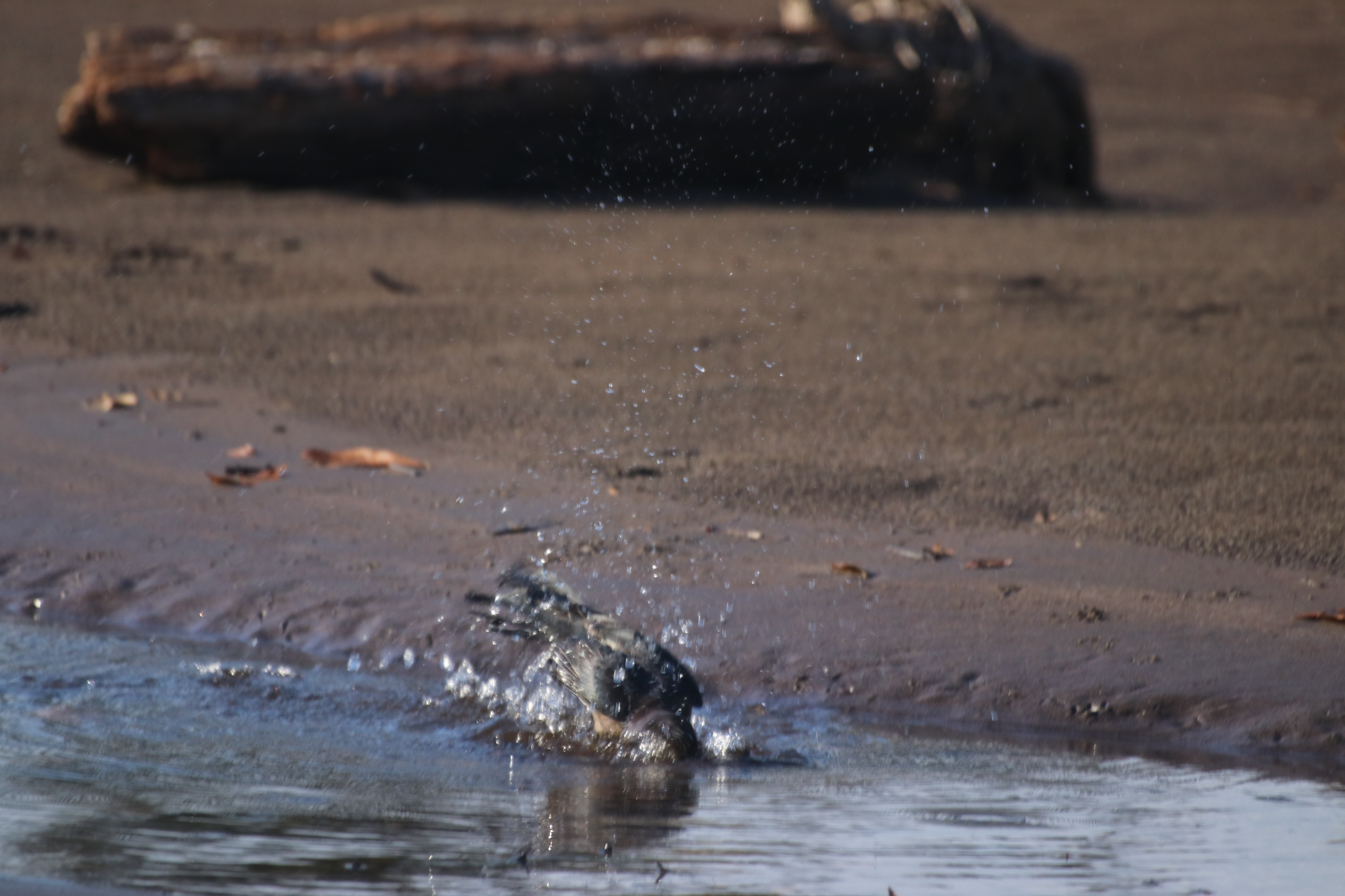Mais aussi des oiseaux viennent boire ou bien prendre un bain, histoire de faire sa toilette et de nettoyer ses plumes. Ils s’éclaboussent de gouttelettes d’eau ou bien s’enfoncent littéralement dans l’eau. Spectacle ahurissant. Rien ne les perturbe. Ils sont marrons et leurs yeux blancs. Cela les rend étrange voir extraterrestre. Cet œil vous épie et vous rend mal à l’aise.