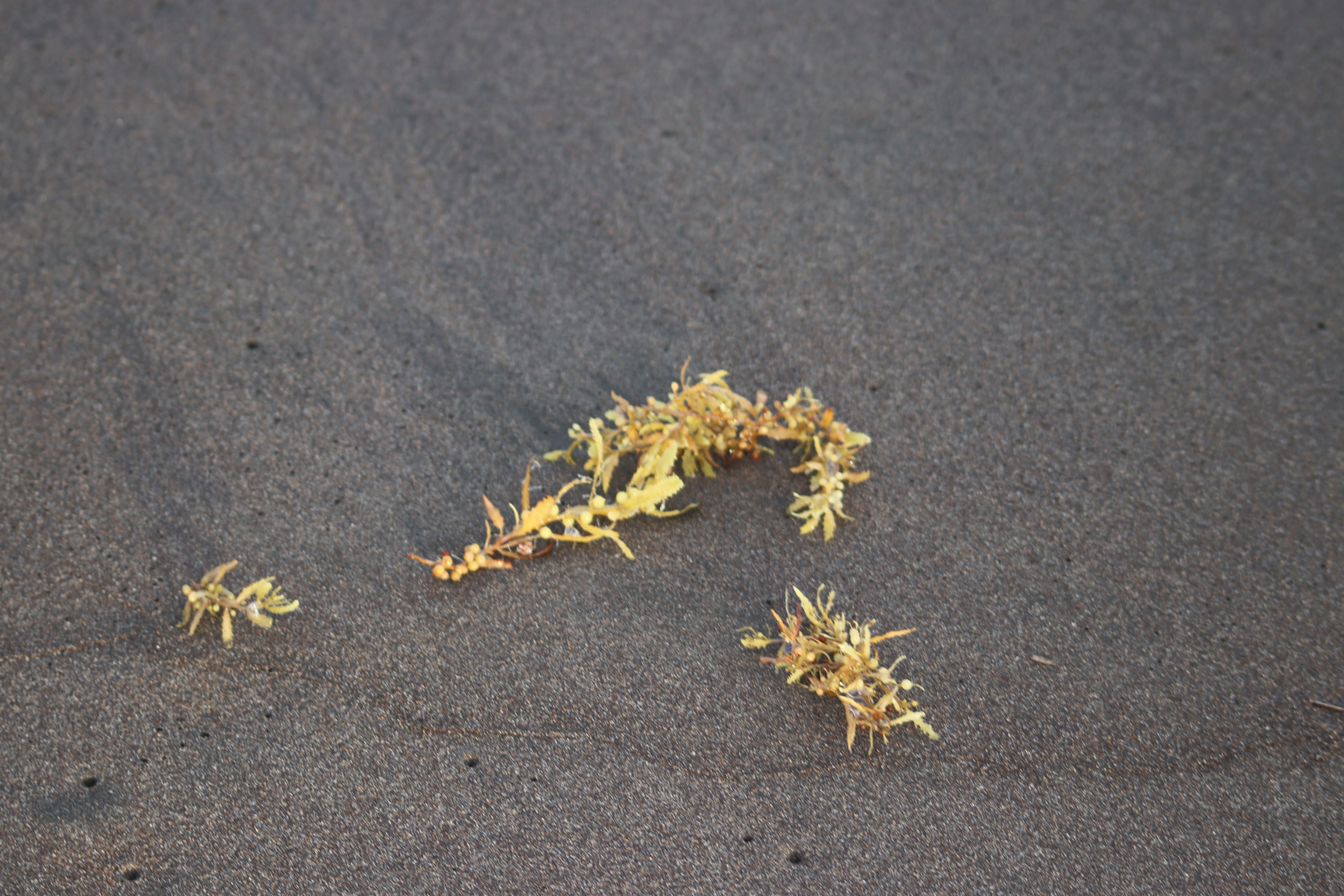 Des algues jaunes forment des amas, des touffes, incrustés dans le sable et semblent se rire de la nature. Elles forment des tableaux pittoresques qui ravissent nos yeux et nous étonnent toujours. La nature a des pouvoirs que nous ne connaissons pas.