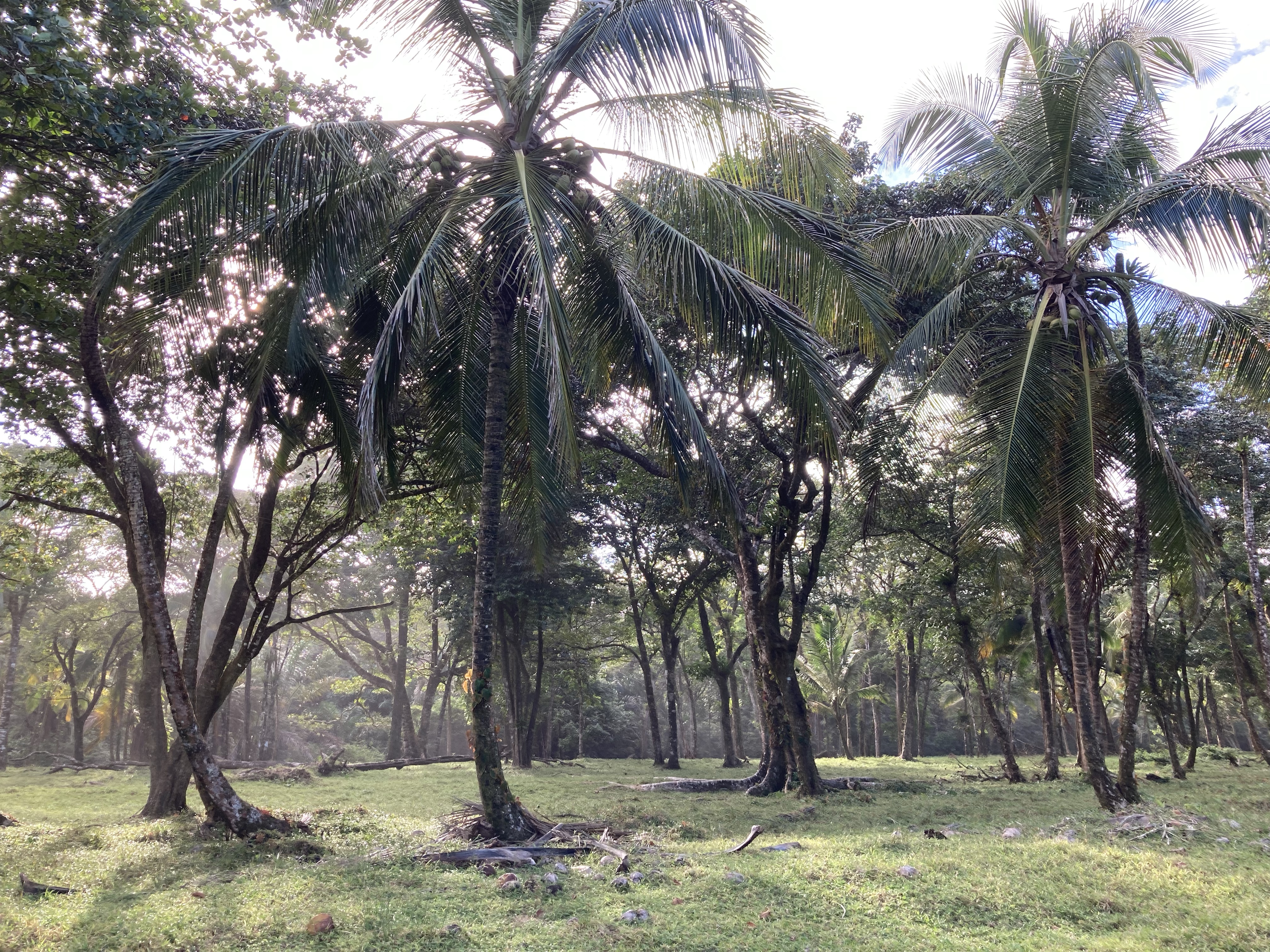 Des noix de coco ont roulé sur le sol et parfois certaines ont fait éclore une jolie feuille de palmier. Là plantée au milieu de nulle part et paradoxalement se fichant du peu de probabilité de survivre. Certaines sur le sol sont jaunes et mortes, asséchées par les rayons du soleil.