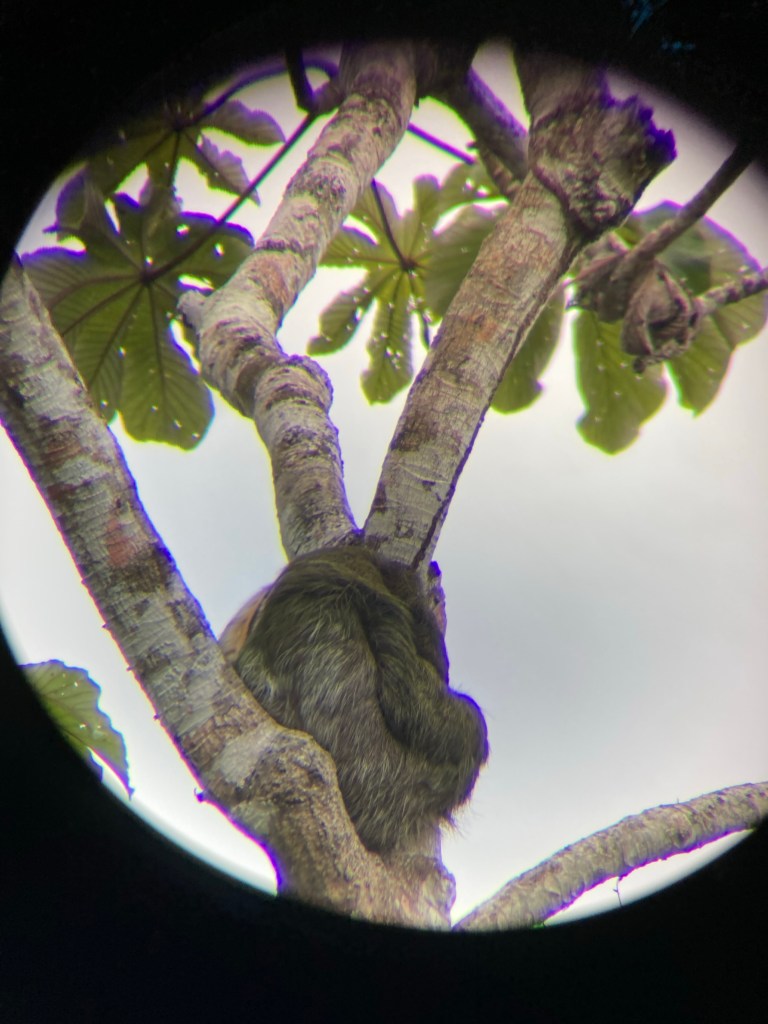 ou bien seulement lever les yeux pour voir des merveilles comme les martin-pêcheur ou bien les paresseux accrochés et enlacés à leur branche, ou les iguanes jouant au acrobranche.