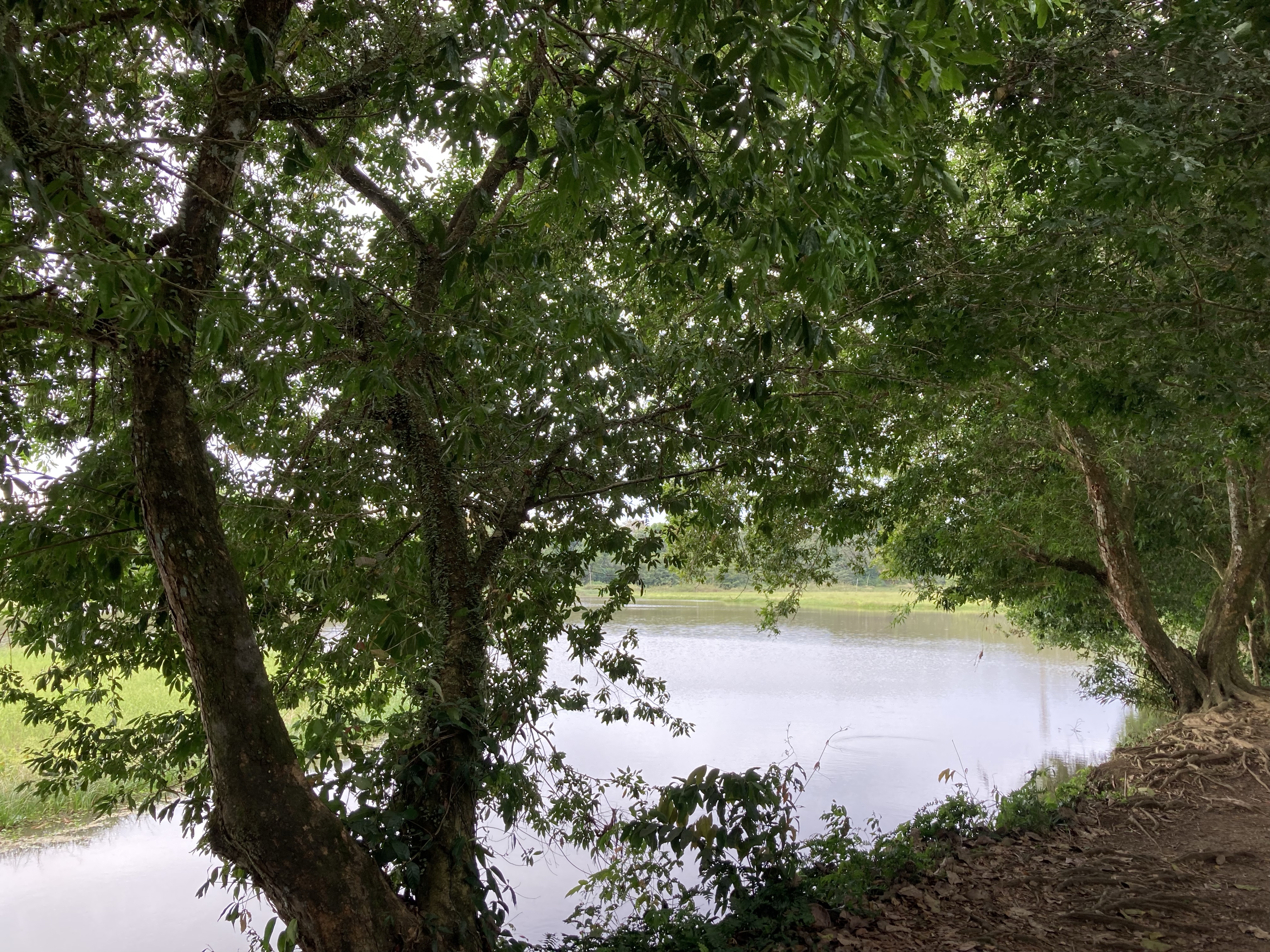 Le long de la rivière de magnifiques fleurs jaunes se miraient dans l’eau marron du fleuve et éclaircissaient notre journée. Cela faisait de grands bouquets jaunes comme un soleil au ras de l’eau. On pouvait apercevoir des bateaux arrimés ou bien des gens et des enfants qui pêchaient le poisson pour se nourrir.