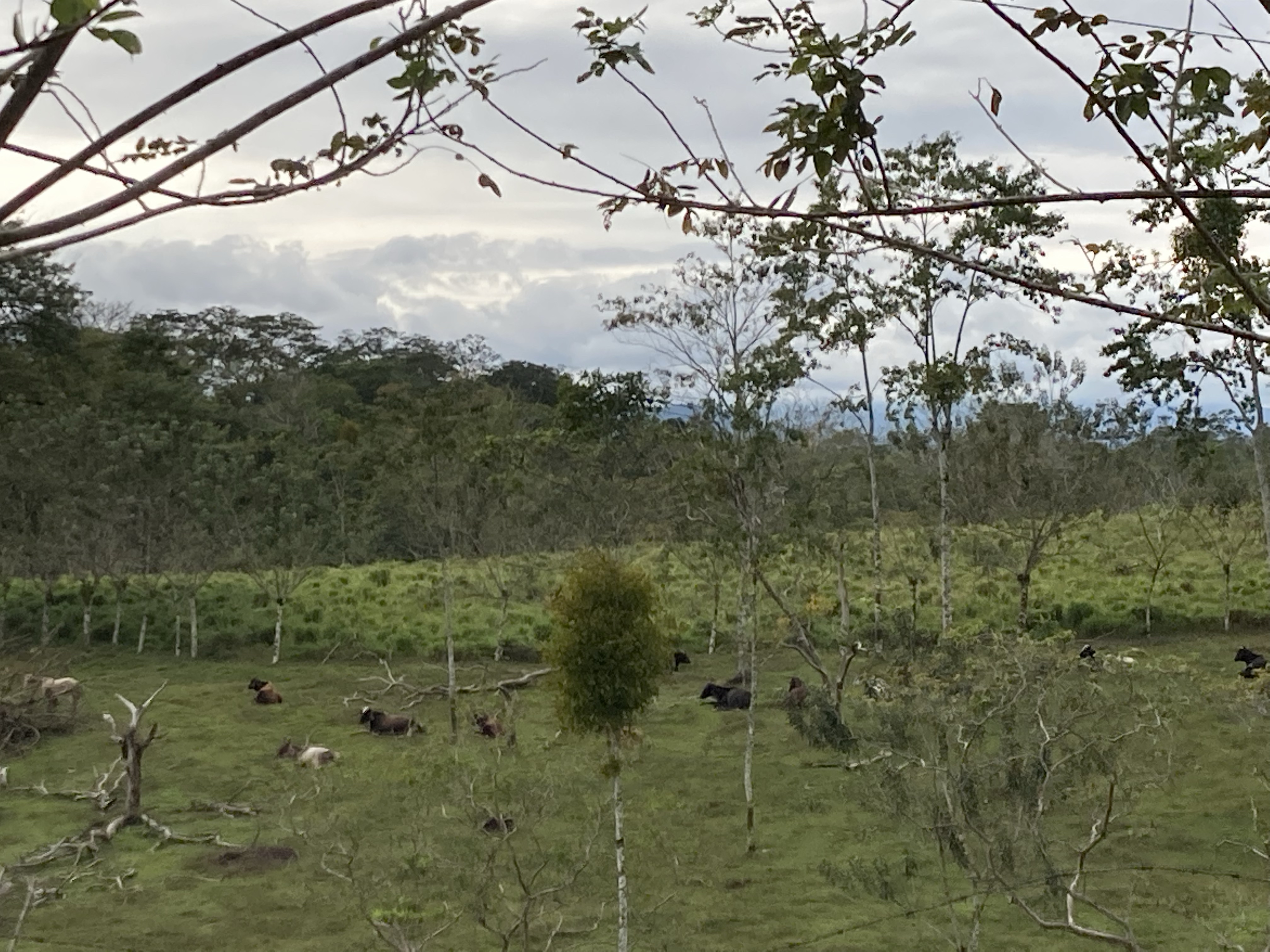 Puis suivre une route qui amène à San Rafael que je n’ai pas trouvé et là j’ai roulé, roulé, roulé ! J’ai découvert la beauté du lac Arenal sous toutes ses longueurs et suis passée par les pampas où les vaches broutent, les grandes herbes volent au vent car il y en a pour arriver sur la ville d’Upala et redescendre vers Katira et arriver à l’hôtel l’Etoile Celeste à la nuit tombée – un bijou. Avant d’arriver sur Upala contrôle des policiers armés de kalachnikovs qui cherchaient quelqu’un ou bien de la drogue. Car il ne faut pas oublier que le Costa Rica est une plaque tournante.